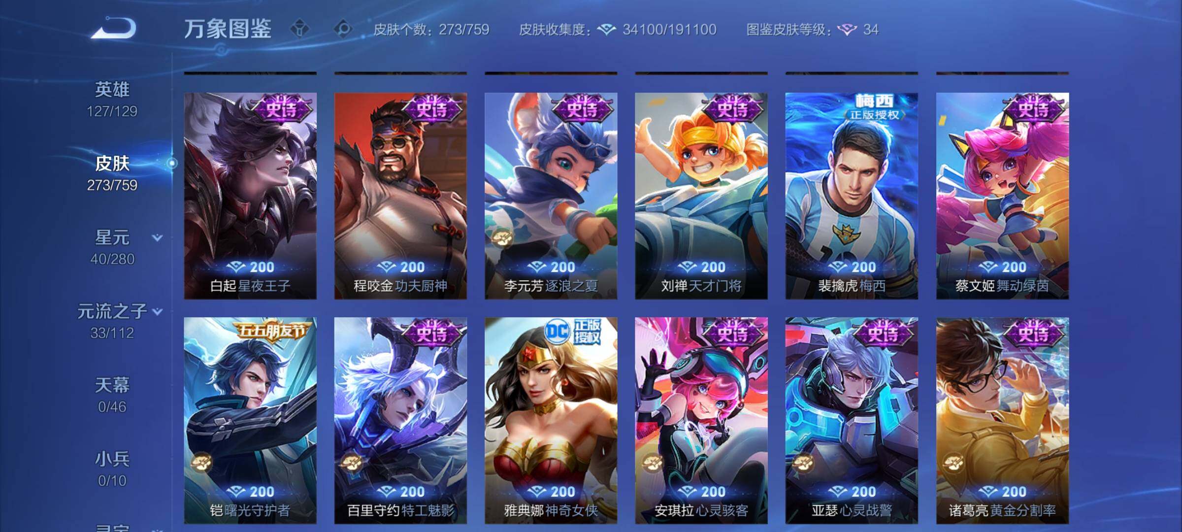 可换绑【梅西 神奇女侠 金标万战司空震1.36万 银标万战老虎1.1 马超铜标