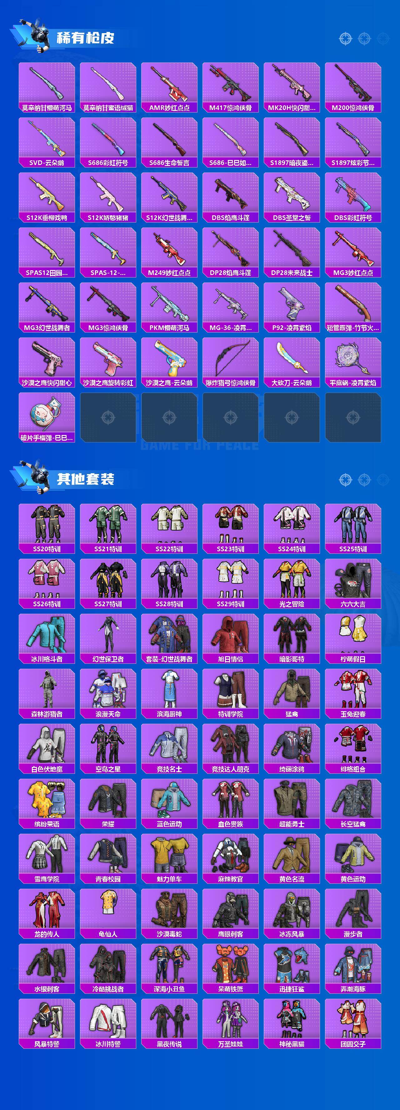 【A3884】苹果【特效枪号 AKM-绿萝繁花/SCAR-L-锦绣绵绵/M416-五爪金龙/M416-电玩时刻/AUG-暖羊咩咩/UMP45-量子极限】 手Q-2粉装-9特效枪-0载具-1粉色飞行器-48571热力值-15王牌印记-120套装-168枪皮