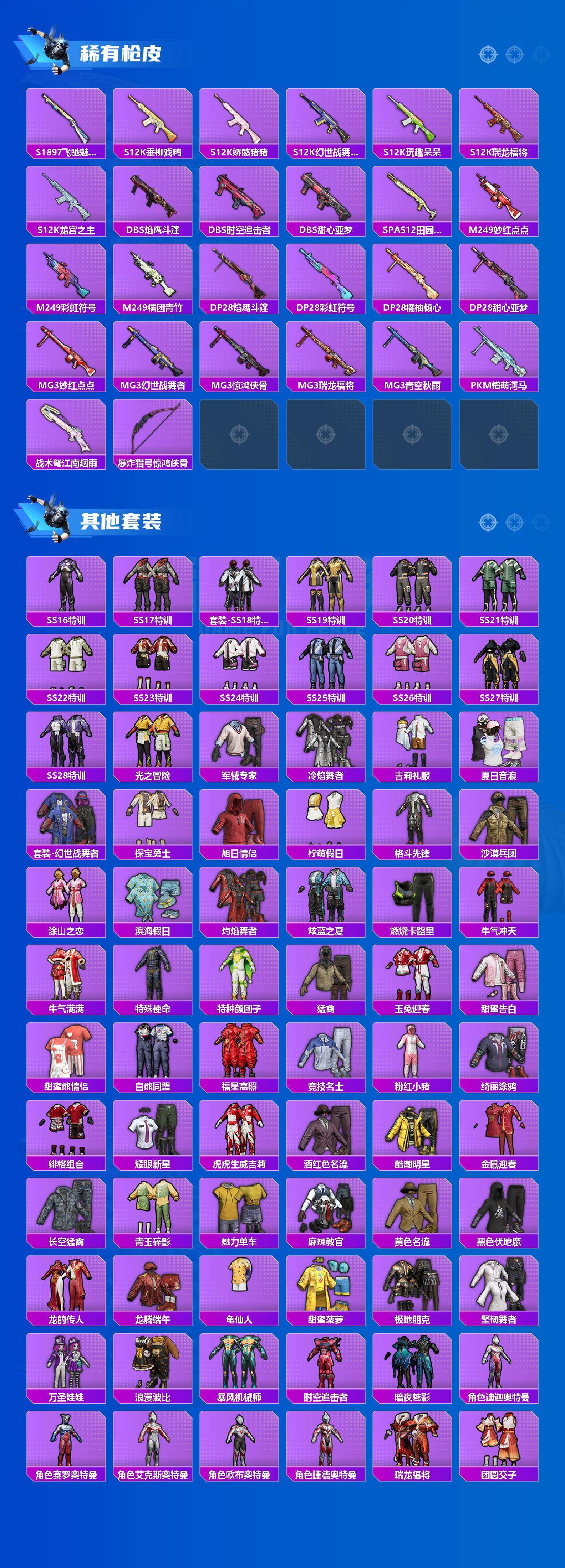 【A3834】苹果【小号 粉装-冰霜白皇/粉装-筑梦精灵/粉装-闲梦青缨/SCAR-L-锦绣绵绵/M416-风花雪月/M416-电玩时刻】 手Q-5粉装-5特效枪-0载具-2粉色飞行器-48368热力值-9王牌印记-122套装-138枪皮