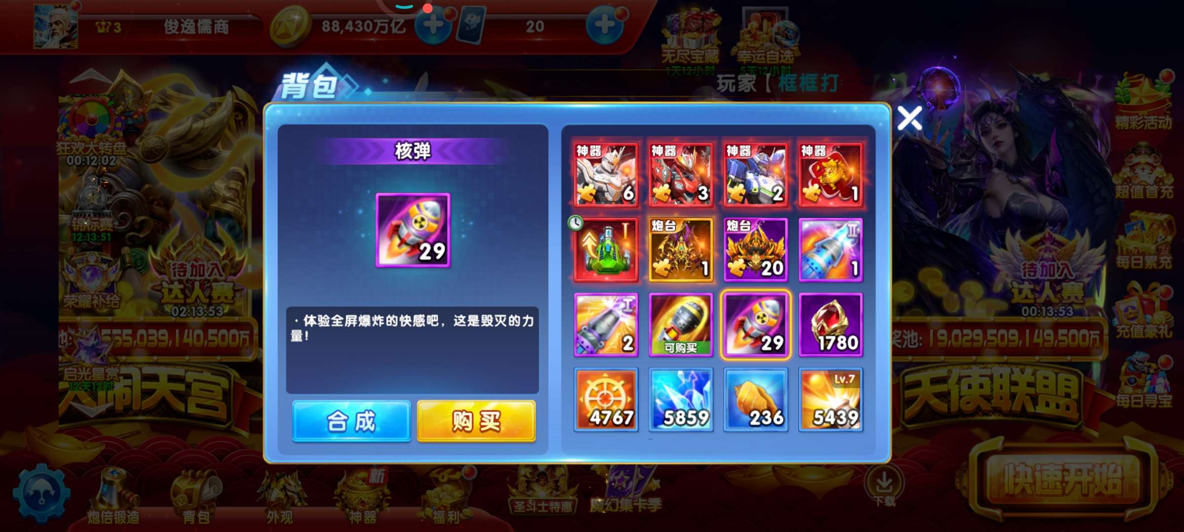v3 884万亿 实60炮 虚70炮7天 水枪1个 巅峰24级 7级狂2天 狂暴5439 核弹29