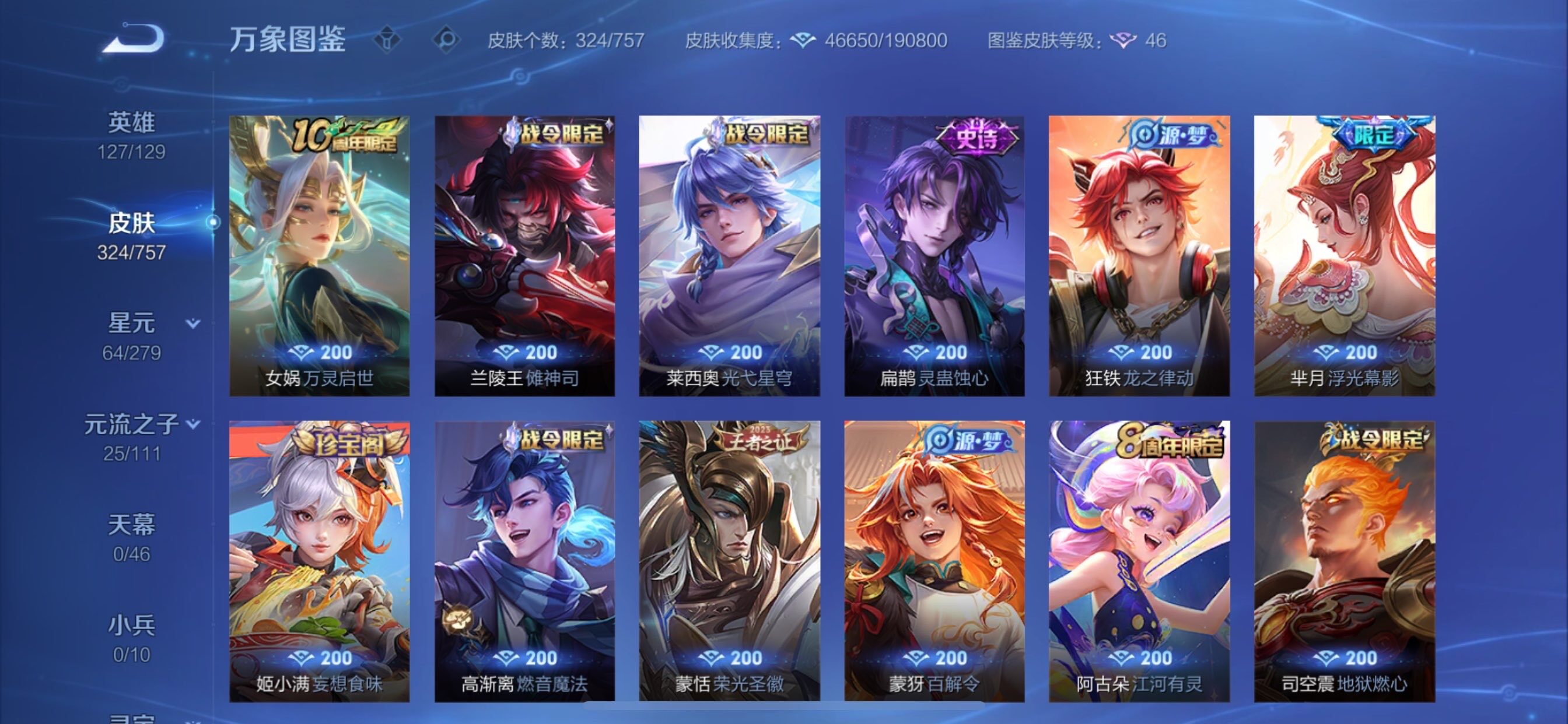 可换绑【V8精品打野号 金标干将 芈月典藏 铠无双 浮生妄 李逍遥 时雨天司 白虎志 神威 多传说限定号】7按键,3星传说,12王者印记,满级铭文,可二次BX3333,苹果Q-V8-324皮肤-1典藏皮肤-1无双-20传说-89史诗【英雄全皮】:李信全皮,蒙恬全皮【荣耀典藏】:芈月大秦宣太后【无双皮肤】:铠神罪【星元皮肤】:宫本武藏幽冥之眼,孙悟空幽冥火,孙尚香未来
