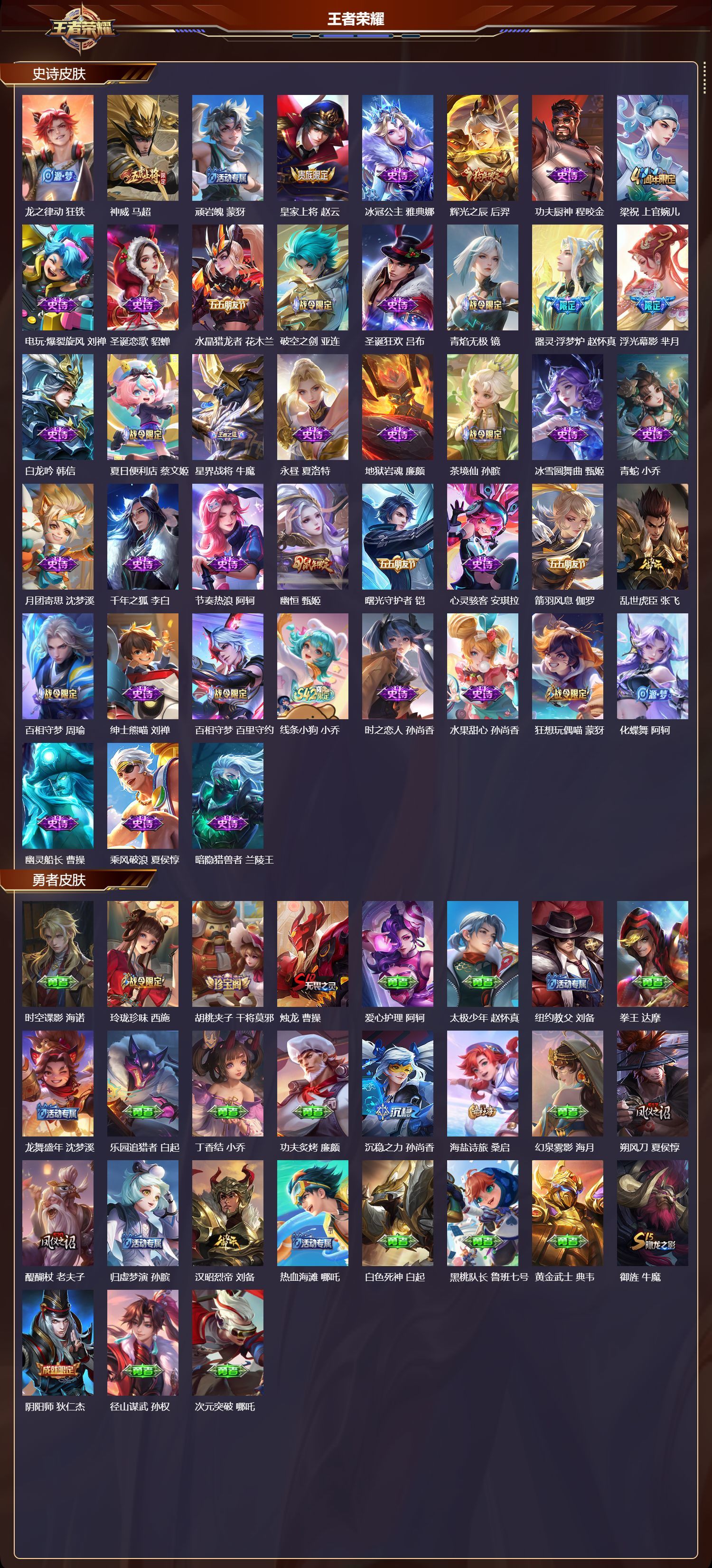 安卓QQ/至尊星耀/306皮肤/128英雄/2典藏/0珍品无双/2无双/1珍品传说/18传说/90史