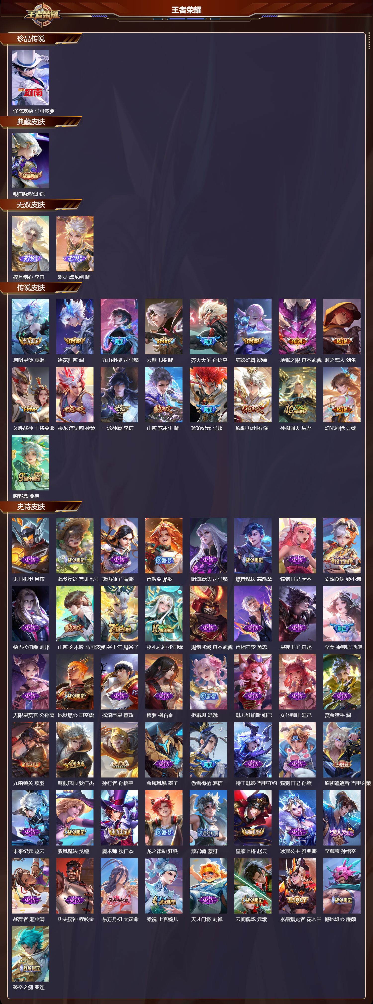 珍品传说皮肤: