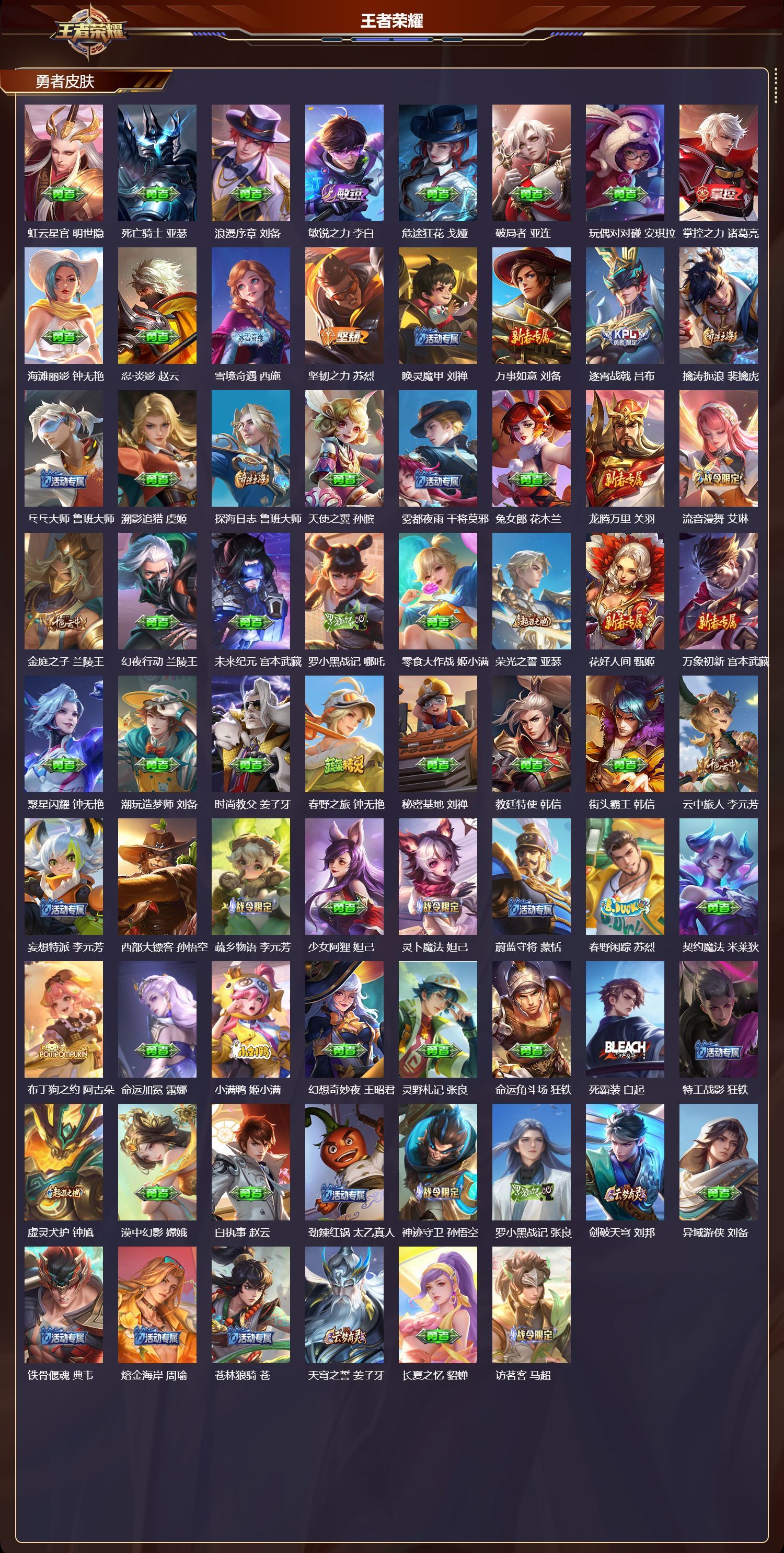 安卓QQ/最强王者/270皮肤/128英雄/1典藏/0珍品无双/2无双/1珍品传说/17传说/70史