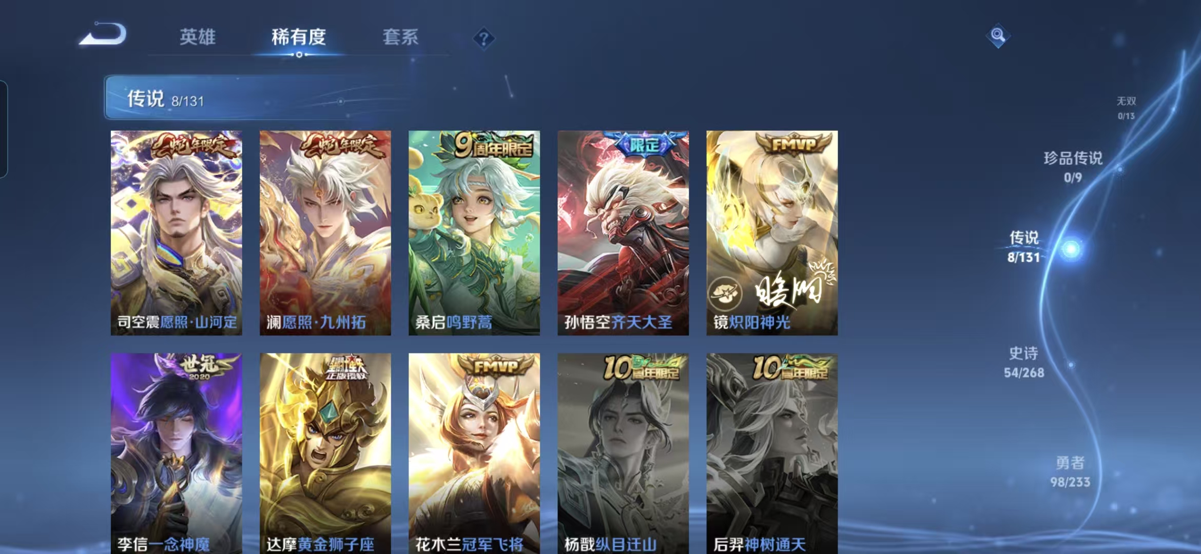 MWZ104605【v6 典藏2 传说8】安卓Q-188皮肤-126英雄 【典藏皮肤】 弑枪猎影 鸣剑·曳影 【传说皮肤】 鸣野蒿 愿照·山河定 愿照·九州拓 齐天大圣 黄金狮子座 冠军飞将 炽阳神光 一念神魔 【史诗皮肤】 蔬乡物语 蔬乡物语 战舞者 星界战将 器灵·浮梦炉 谧流熔炉 龙之律动 地狱燃心 青焰无极 踏浪烽翎 埋骨钱 琥珀纪元 苍威无极 江河有灵 超元猎域 百解令 荣光圣徽 百相守梦 顽岩魄 化蝶舞 星界游侠 顽趣 驭风魔法 功夫厨神 女仆咖啡 魅力维加斯 魔术师 鹰眼统帅 无限