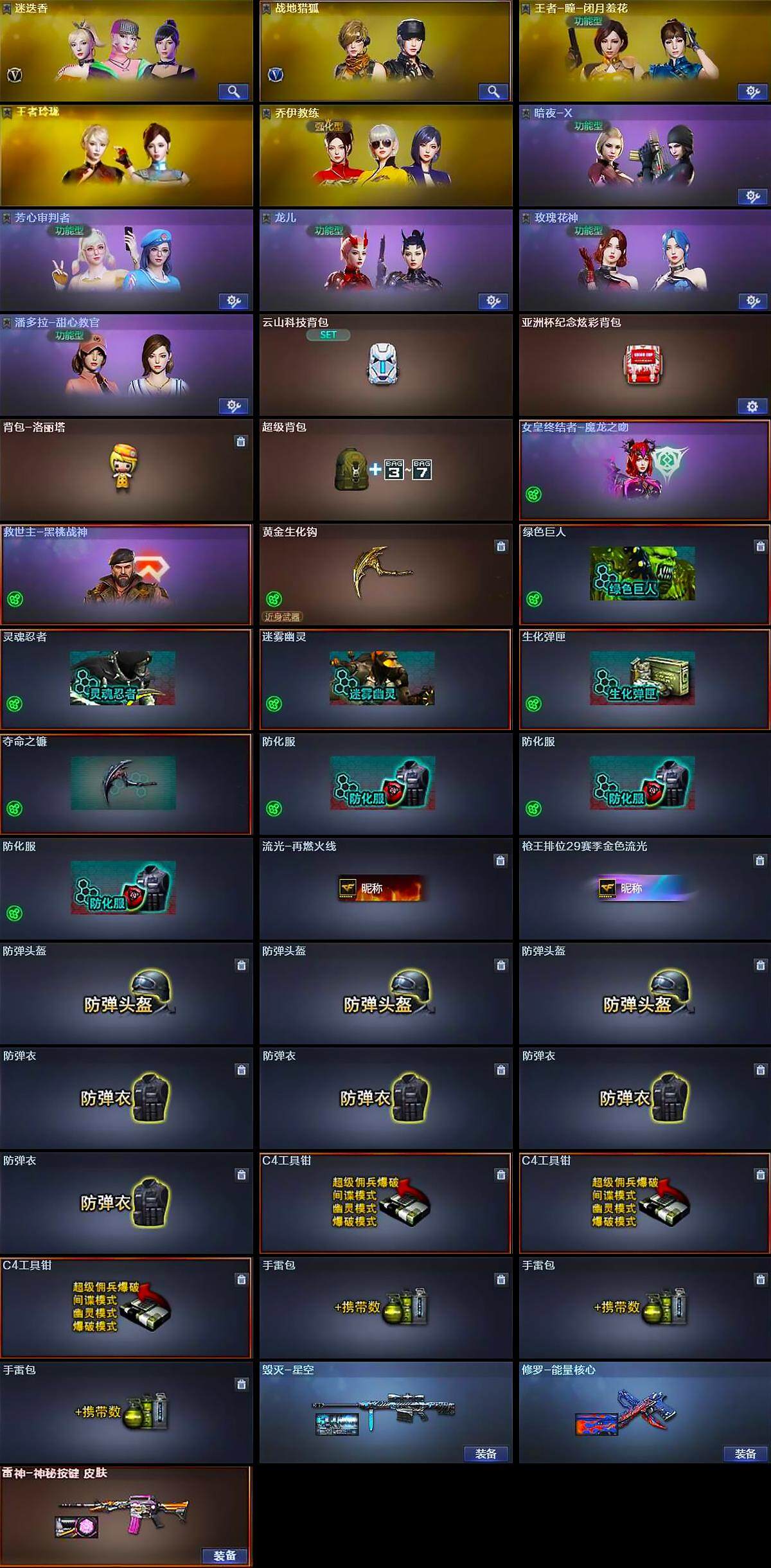 【皮肤】:雷神-神秘按键 皮肤,AK47-火麒麟-百城23冠军皮肤,毁灭-星空,毁灭-英雄计划 皮肤,修罗-能量核心