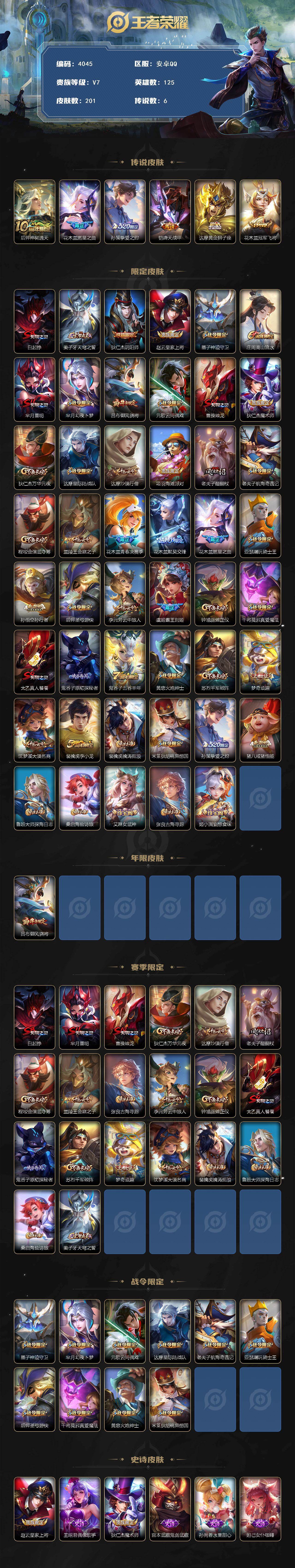 安卓Q-V7-永恒钻石II段位-125英雄-201皮肤-6传说-47史诗