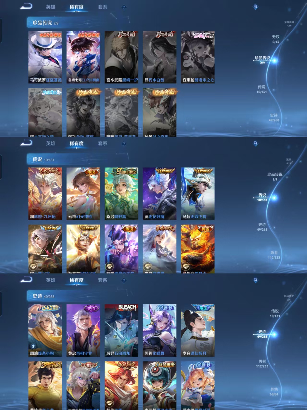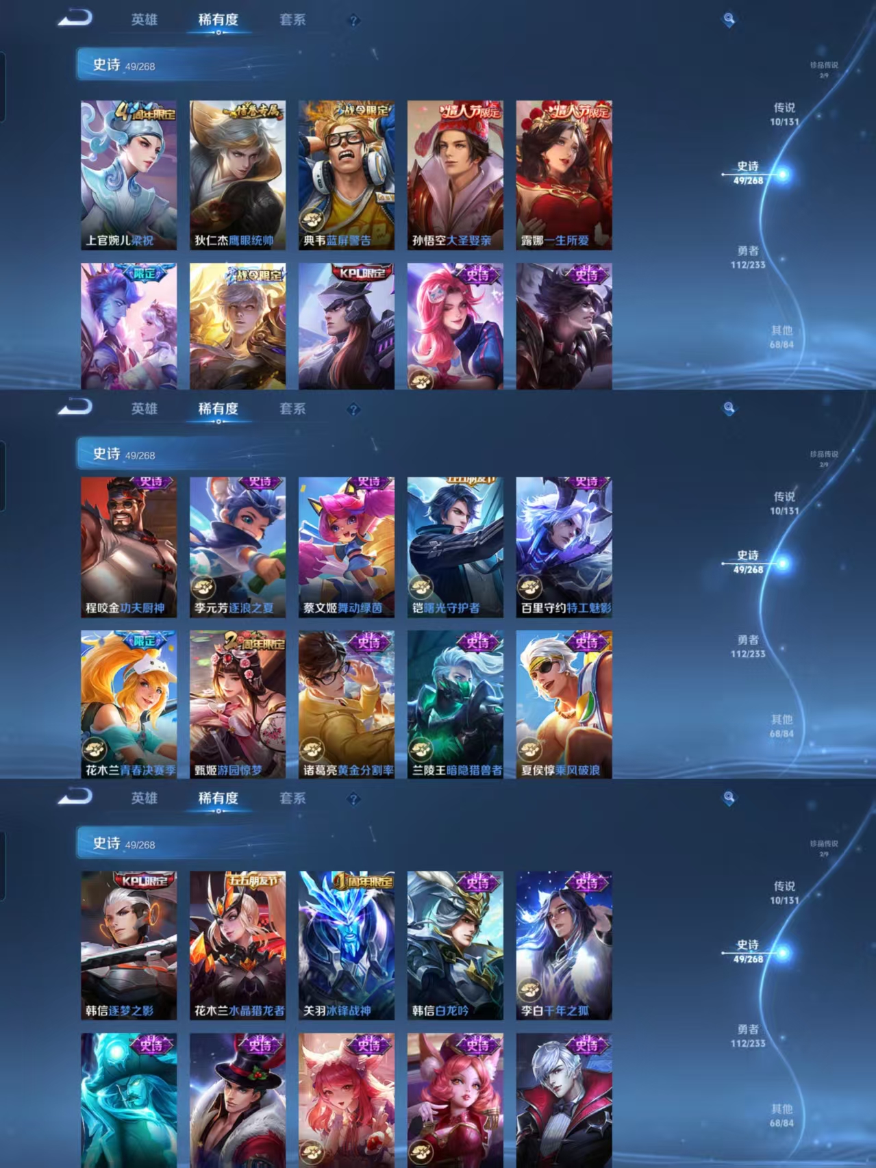 v7 典藏1 珍品2 传说10 星传说金色仲夏夜 -242皮肤-127英雄