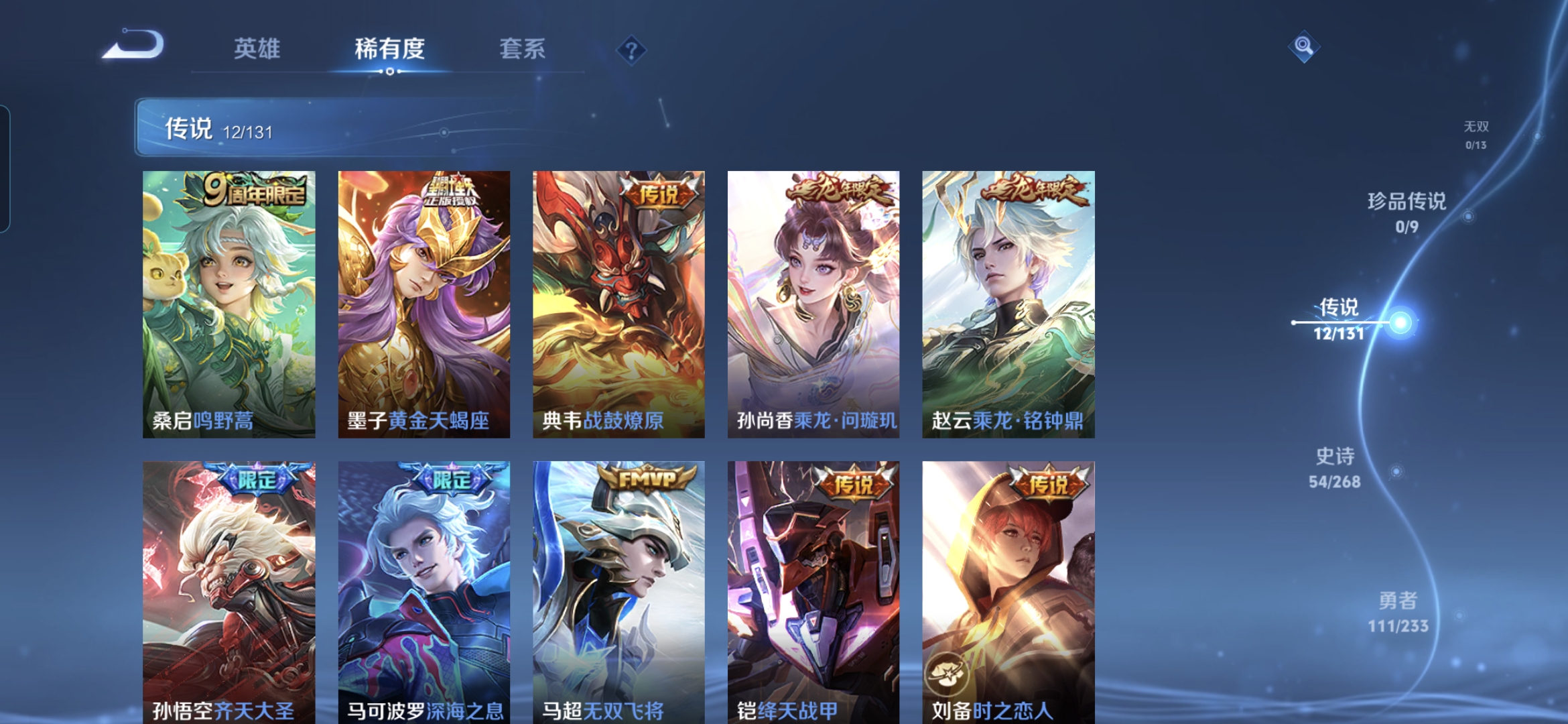 MWZ104596【v7 12传说 1星传-仲夏夜之梦】安卓Q-230皮肤-126英雄 【传说皮肤】 黄金天蝎座 鸣野蒿 乘龙·问璇玑 乘龙·铭钟鼎 战鼓燎原 齐天大圣 深海之息 无双飞将 仲夏夜之梦 久胜战神 绛天战甲 时之恋人 【史诗皮肤】 蔬乡物语 蔬乡物语 茶境仙 百相守梦 傲雪梅枪 谧流熔炉 孙行者 龙之律动 山海·玄木吟 聚星闪耀 江河有灵 决胜大满贯 匿光侦查者 死神来了 绮世丹青 奇幻香踪 星界游侠 朱雀志 拒霜思 功夫厨神 女仆咖啡 魅力维加斯 魔术师 鹰眼统帅 圣诞恋歌 箭