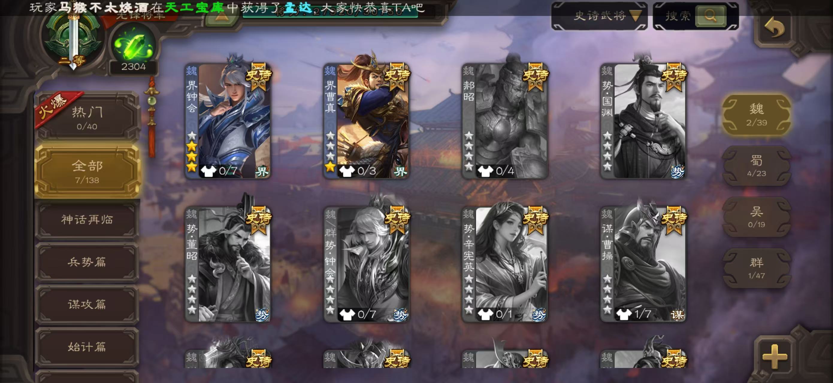 史诗武将数量: