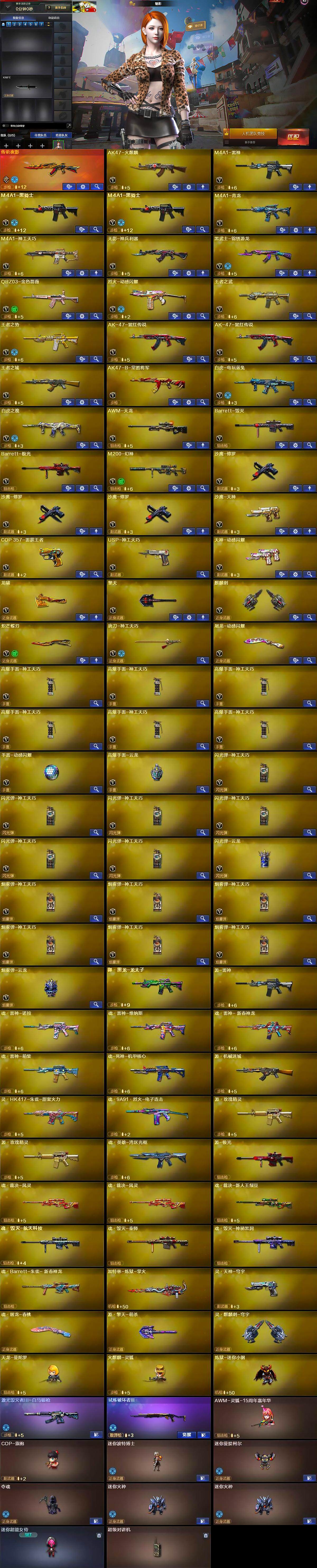 【英雄级武器】炽芒蝶刃 Scar Light-白虎 Kar98K-星神 机械迷城-穹宇 Barrett-极光 AWM-天龙 M4A1-黑骑士 烟雾弹-云龙 闪光弹-云龙 龙啸 高爆手雷-云龙 云龙扇 黑