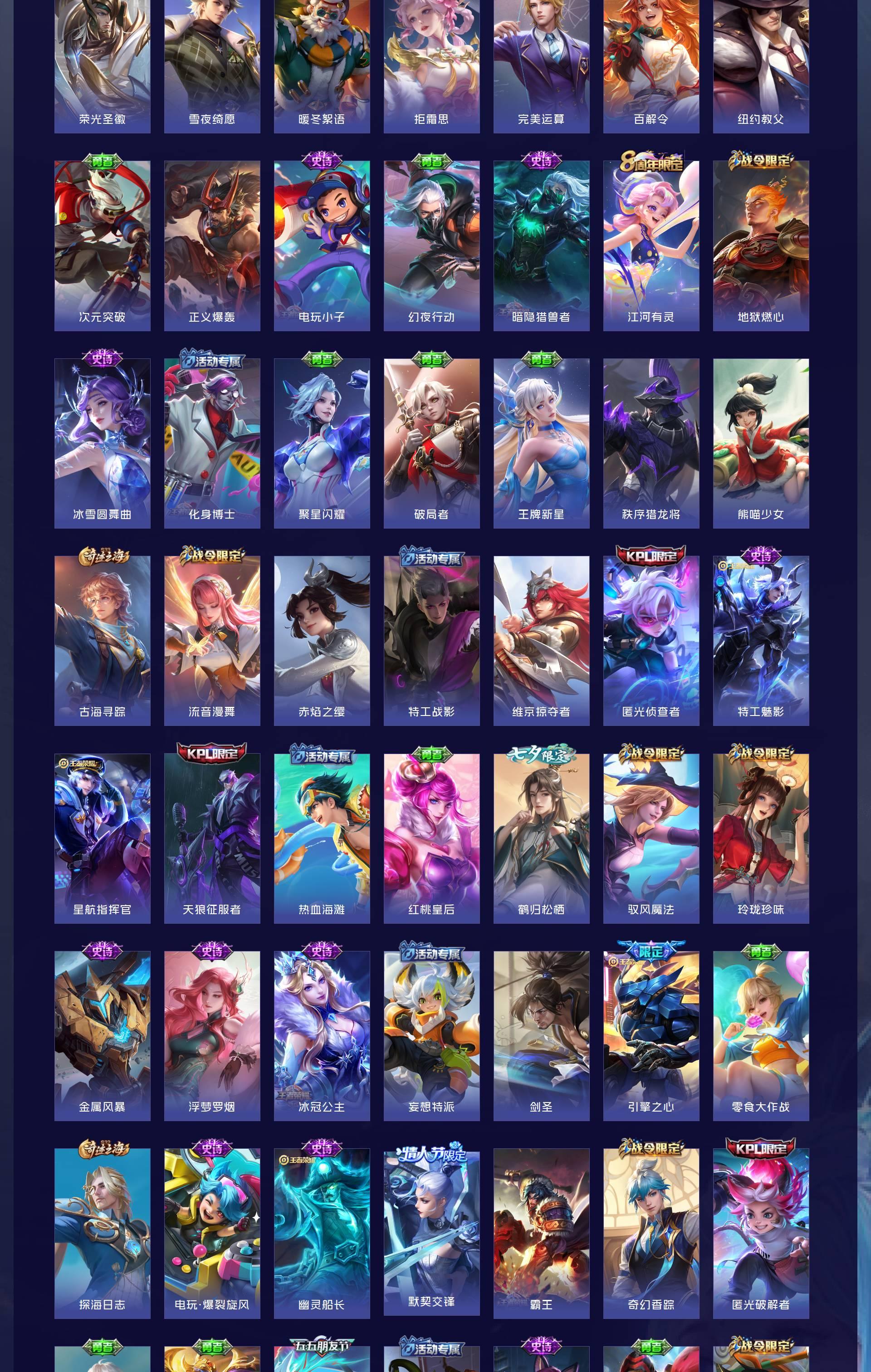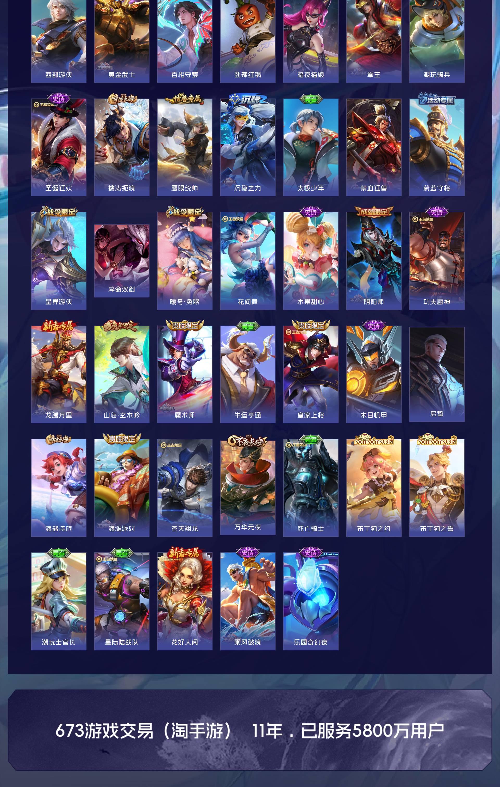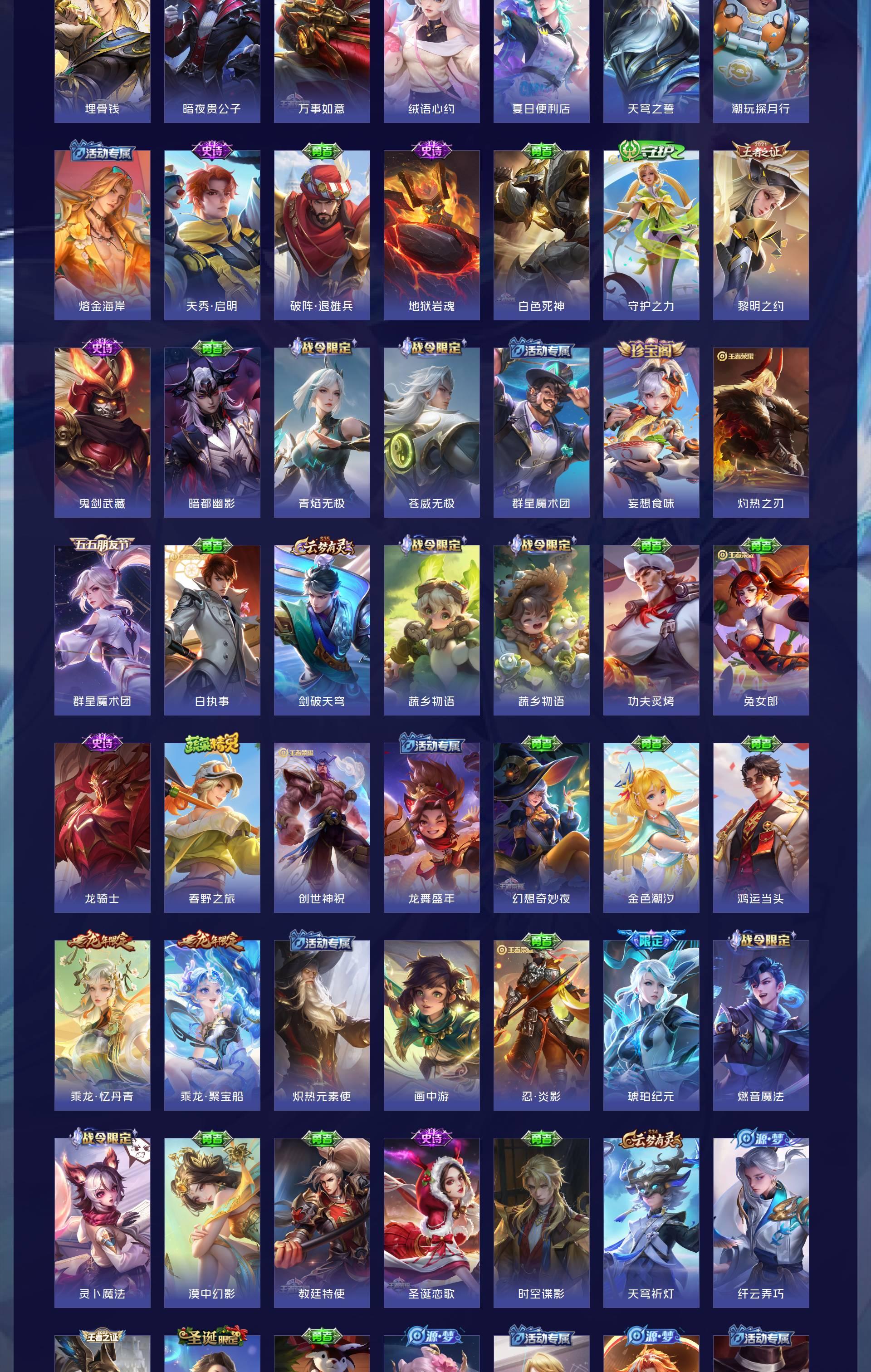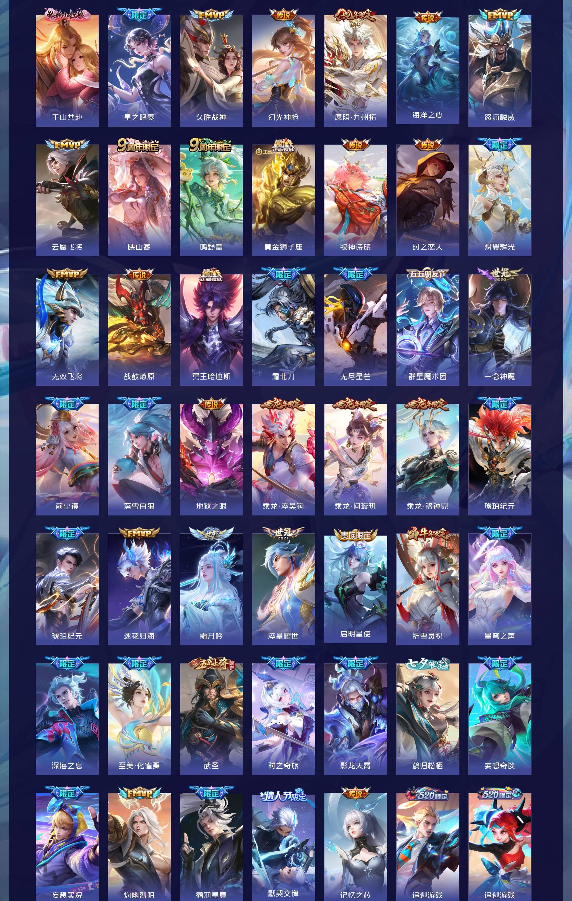 V9 皮肤333 英雄129 至尊星耀 荣耀典藏3 无双皮肤6 珍品传说8 星传说5 传说57 其他皮肤264