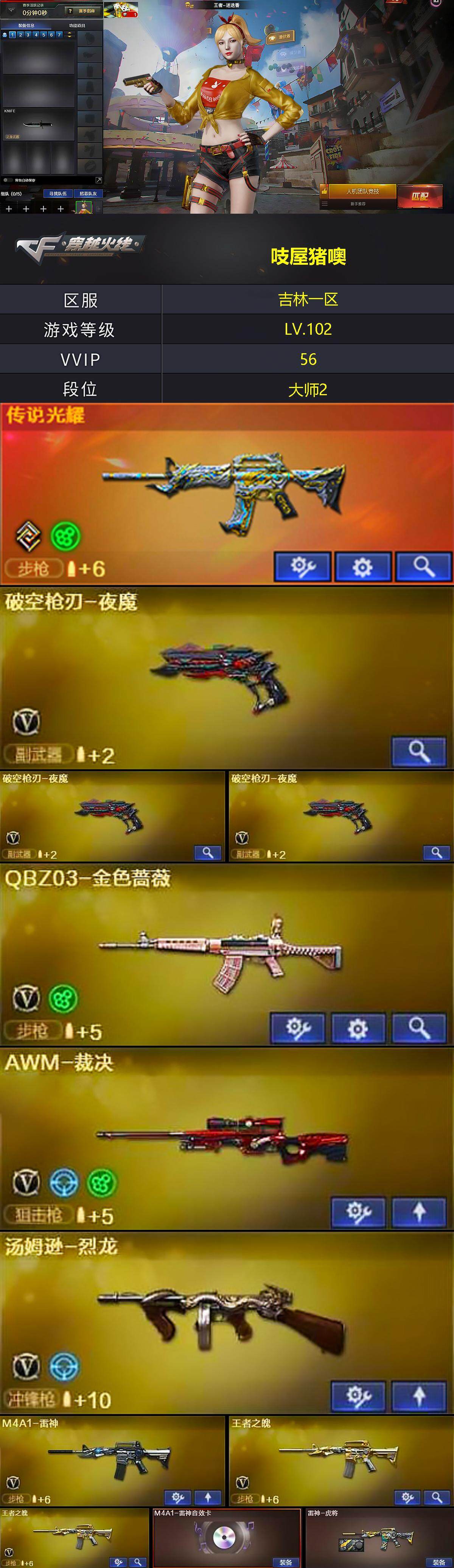 【CF3680】吉林一区-55V-9王者-4炫金【双全号 传说光耀,QBZ03-金色蔷薇,C.A.T,M4A1-黑骑士,汤姆逊-烈龙,沙鹰-修罗】