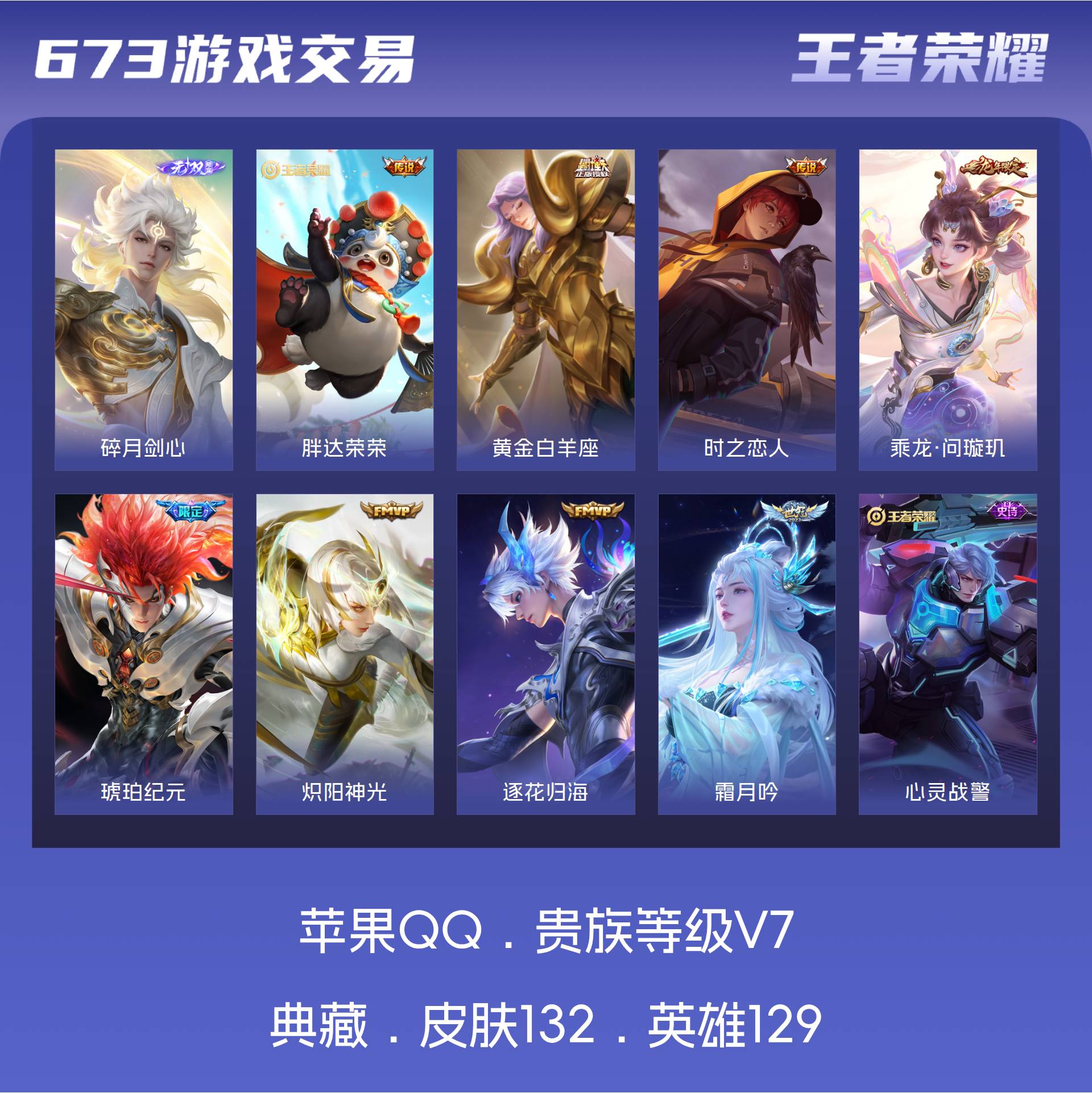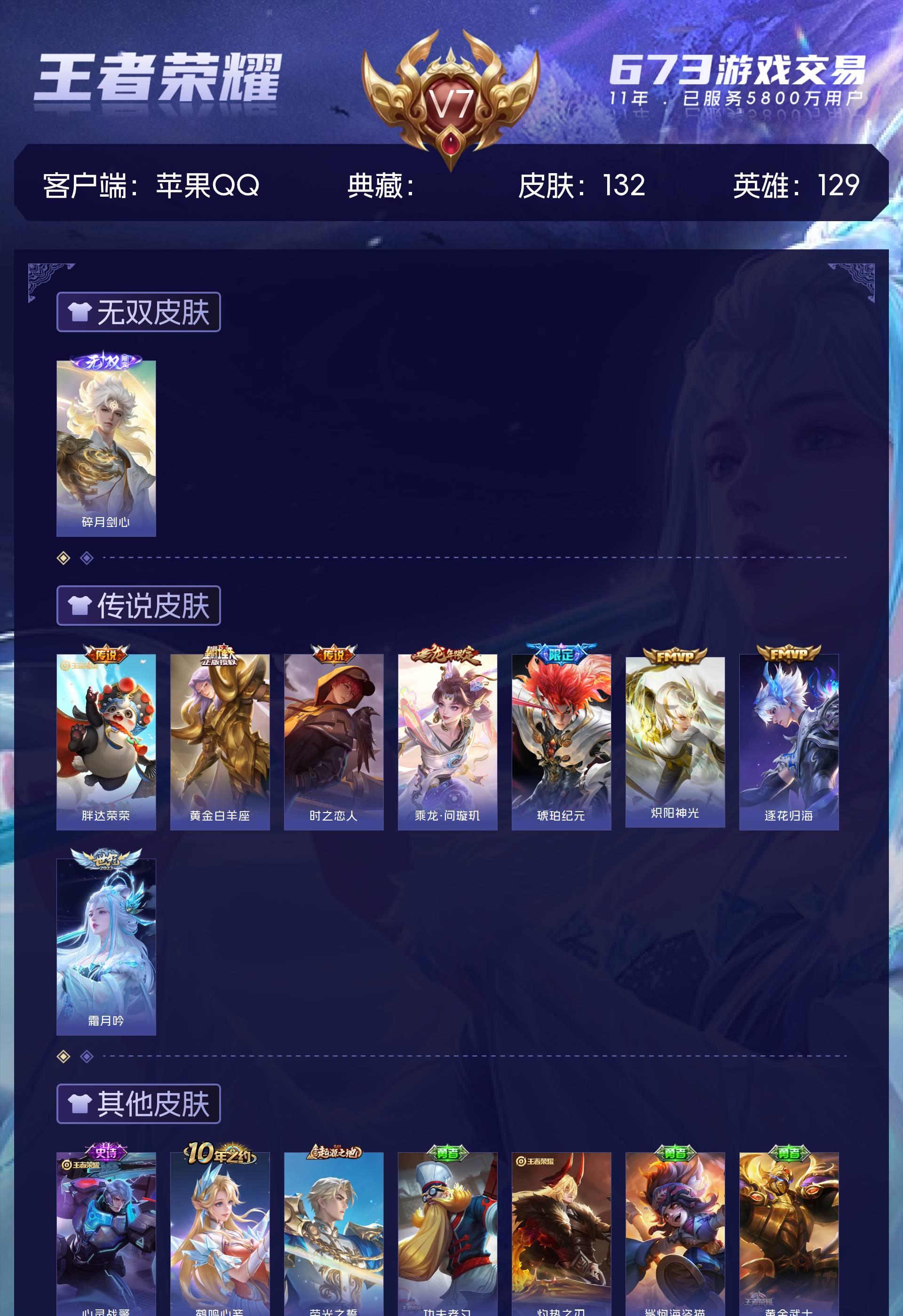 V7 皮肤132 英雄129 最强王者 无双皮肤1 传说8 其他皮肤129