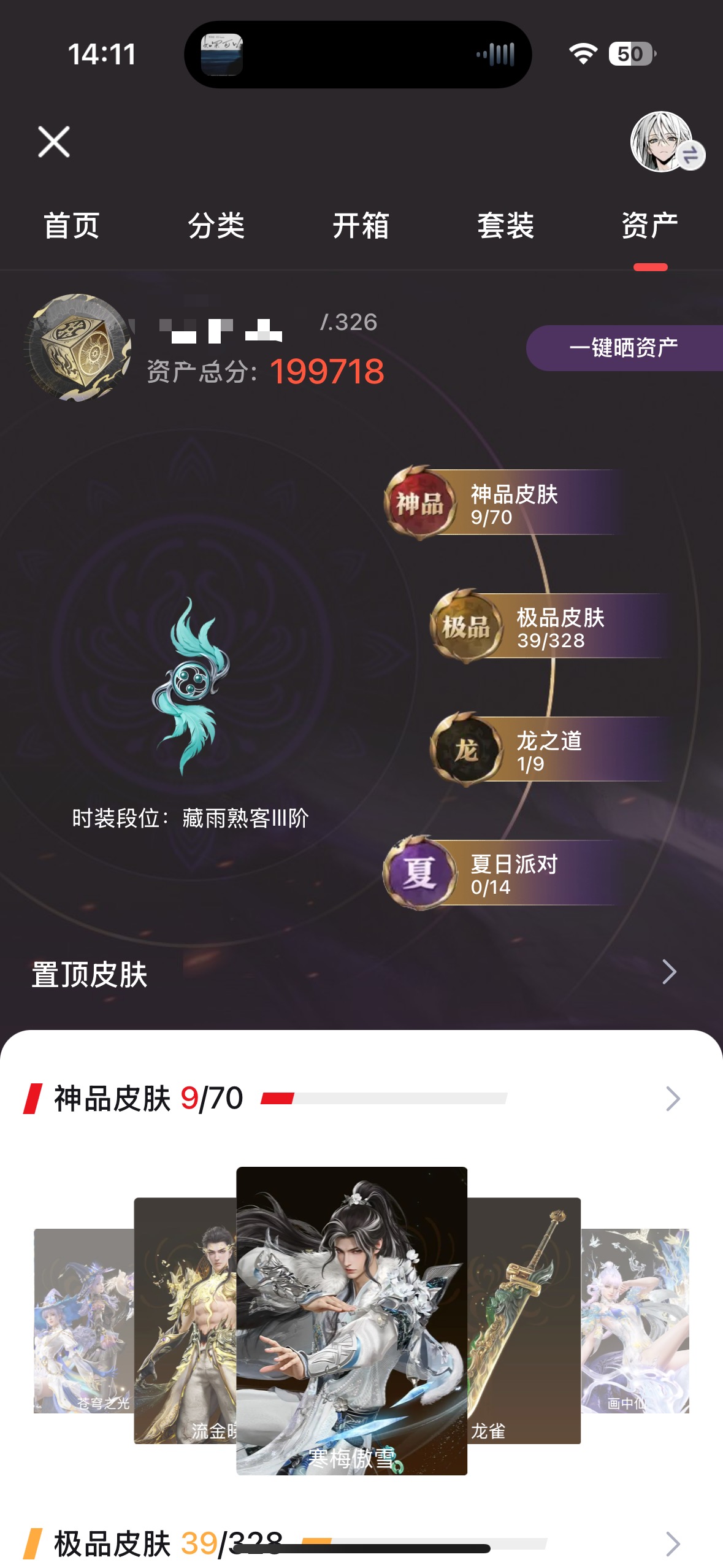 MYJ417【9红 39金 1龙之道 画中仙 飞将戟 帝星 少阳剑 寒梅傲雪 换绑时间2.16】【游戏等级】326【大区】国服【神品皮肤】 寒梅傲雪 龙雀 画中仙 流金晓锦 苍穹之光 帝星 飞将戟 墨离 少阳剑 【极品皮肤】 斗罗大陆·唐三 决战平安京·朔夜游方 兰庭月 春日序曲·晨风 西行劫·蜘蛛精 春雪 日道神子 寒烟素 武道无穷·八极 代号·丝莼 不良人·李星云 代号·冰凌 日影花阴 追猎 阴阳姬 清雅少女 灵鹿巫者 麟鹿大铠 九阴圣女 瀚海苍鹰 贵胃少女 伏波龙女 春桃笑 持威明王