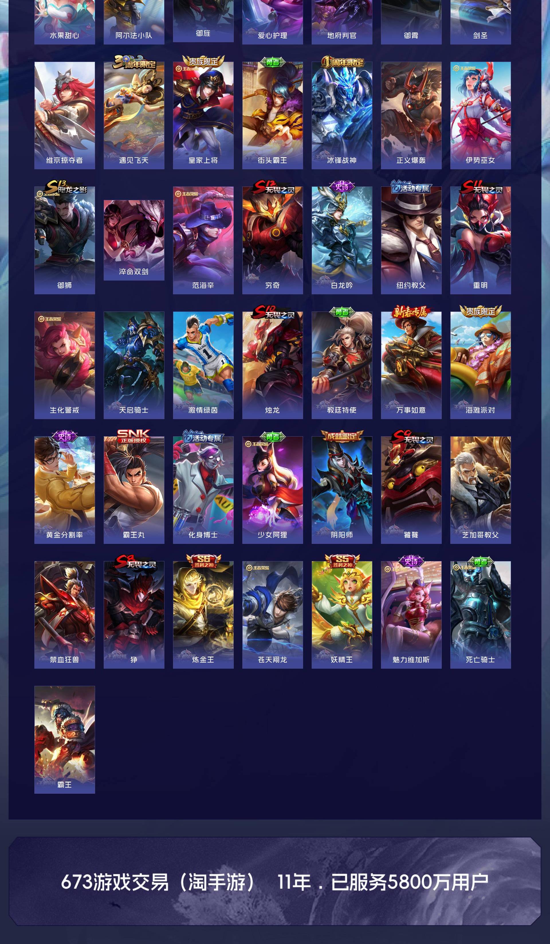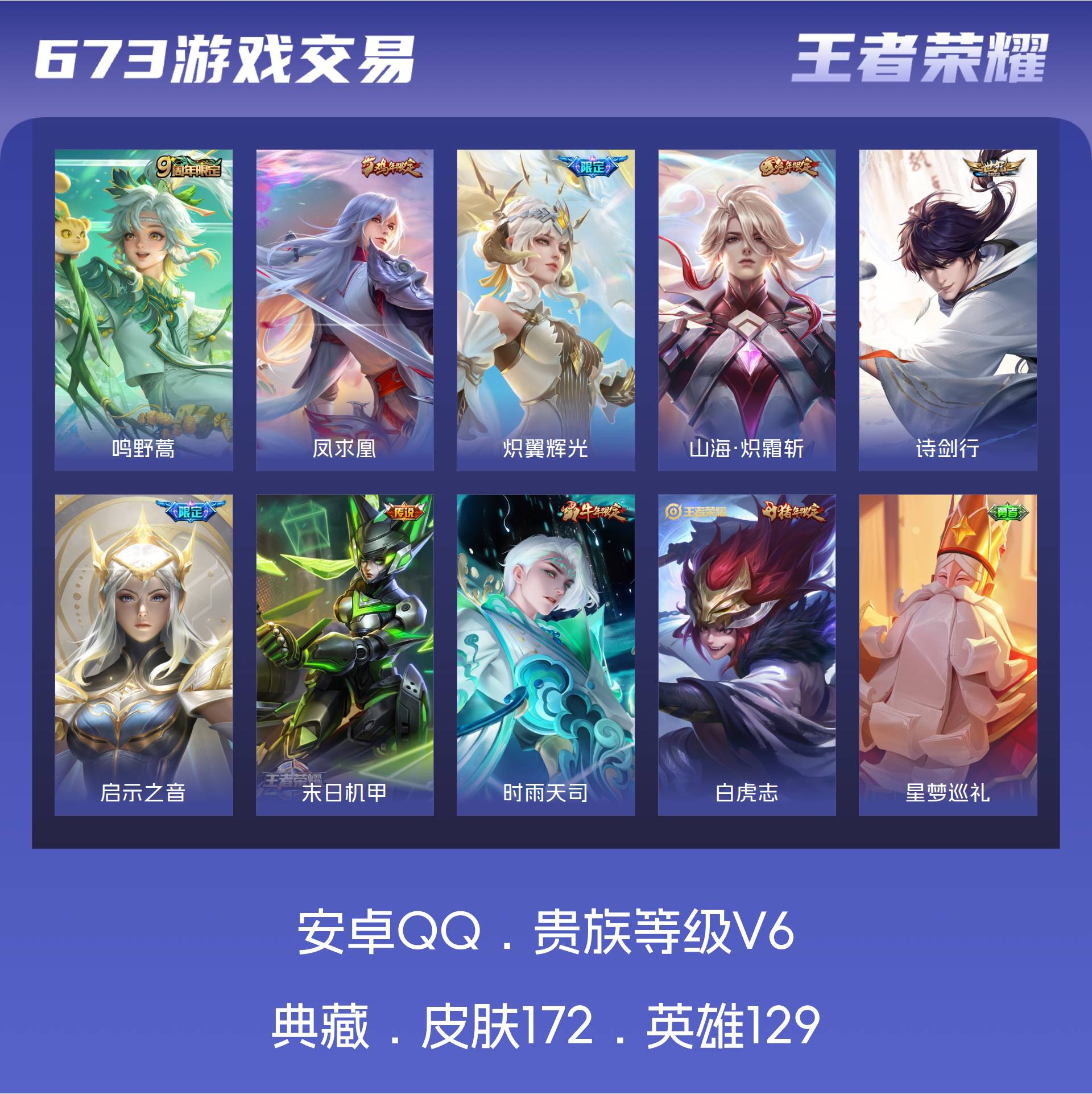 V6 皮肤172 英雄129 永恒钻石 传说9 其他皮肤169