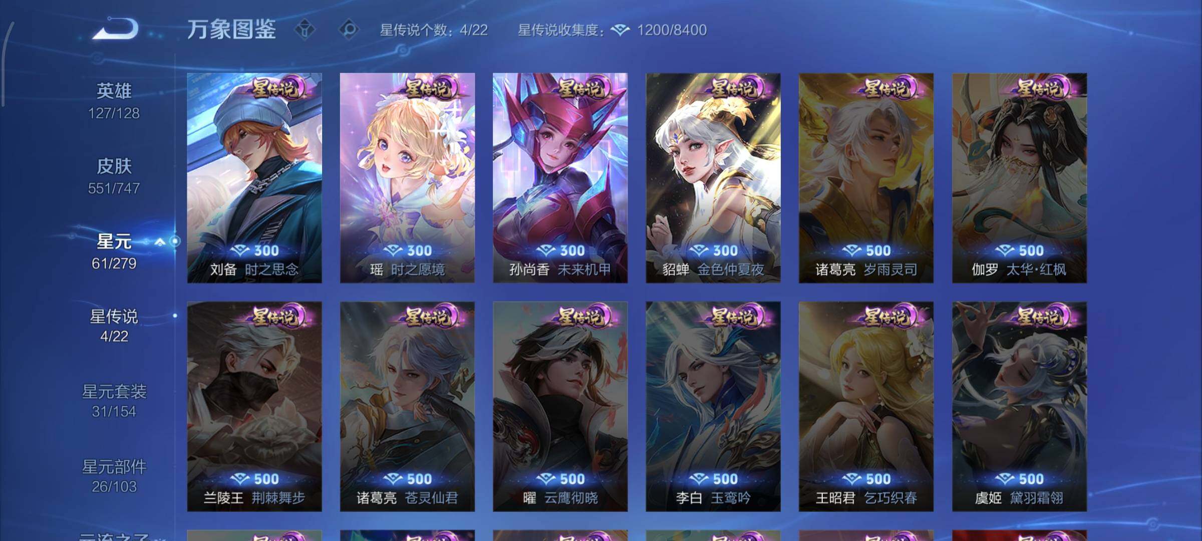 4典藏·7无双·差宫本满珍品·4星传说·77传说·全皮瑶带紫瑶·全皮西施·全皮嫦娥·全皮蔡文姬·全皮