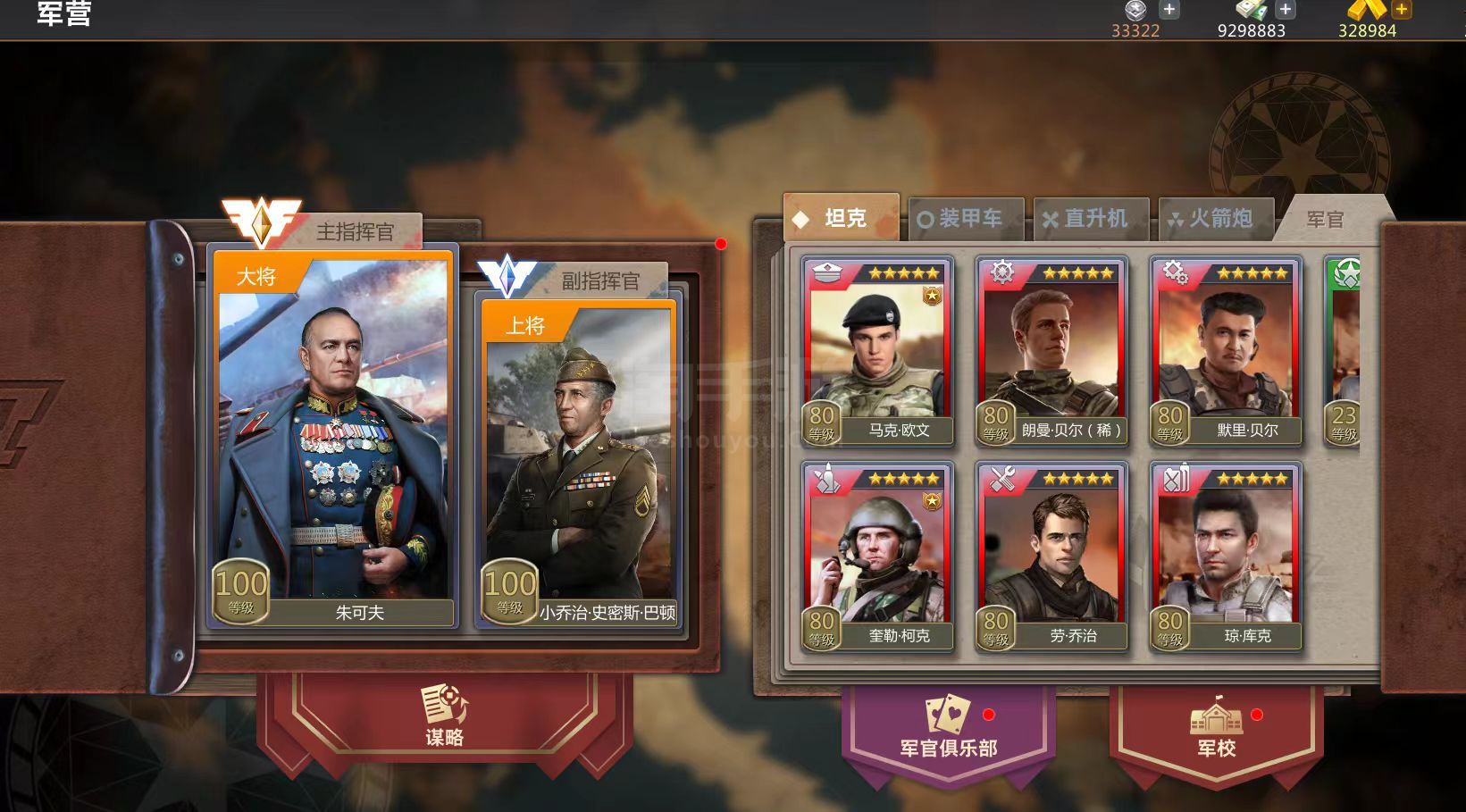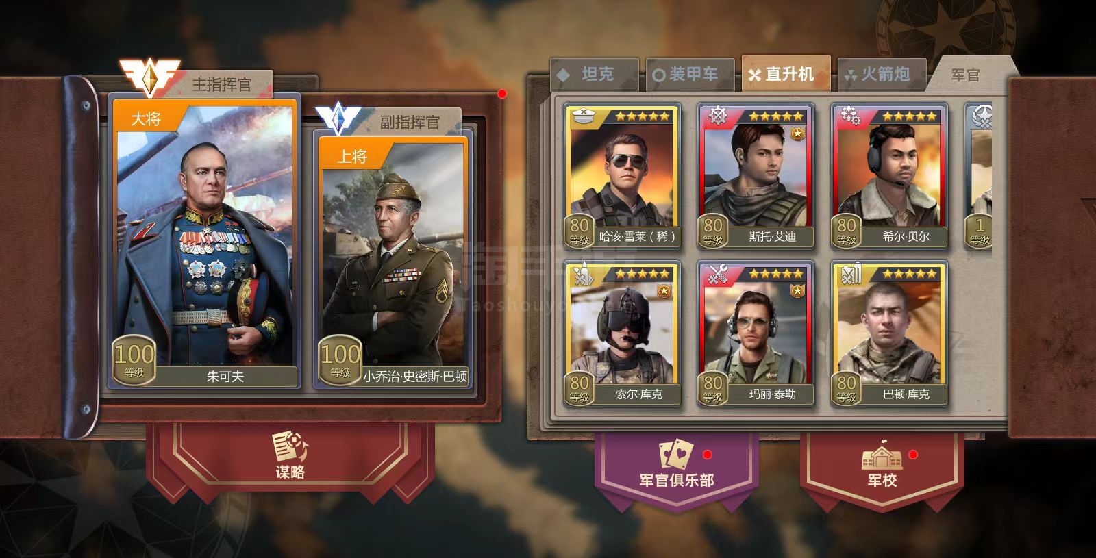 3110安卓oppo-手电通用,100级特10元帅。主打MBT-S,科曼奇S满,金直九研究满。夏尔巴到改,ZBD03改都有。常用的指挥官哈、朱、巴顿、那兔、维特满阶都有。近10个全红面板随意用。天梯上英雄没问题
