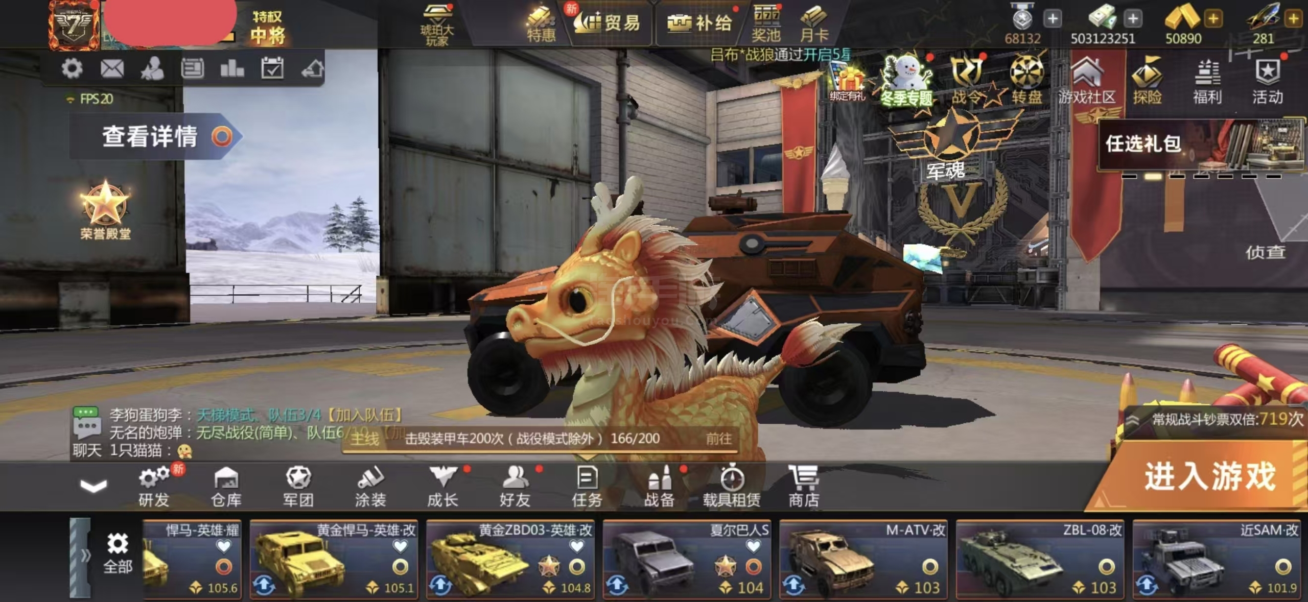 3111安卓oppo-手电通用-凯格尔德库特隆朱古锁战役-黄金悍马耀-夏尔巴S-03耀差50万分出-巨龙甲两块-武器甲弹药锻造全红-宠物满图鉴-载具15图鉴-珍贵军魂都有-洪流甜筒纪念星路奖杯-喷涂都好