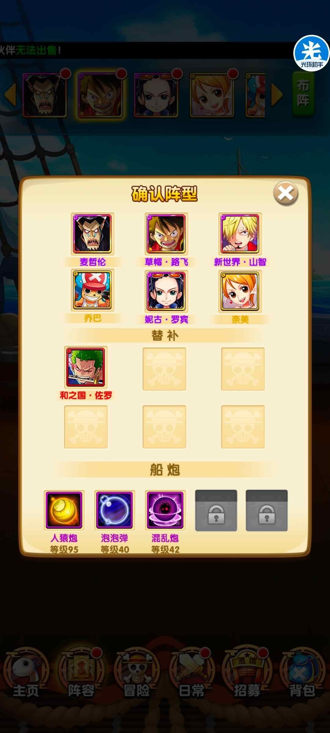 v6,竞技场20名,战力靠前。情怀草帽团阵容,麦哲伦可以置换和索