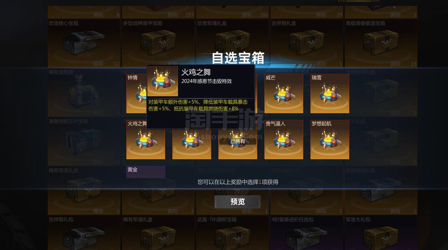 6战神、盛会套巨龙甲、盛世弹药、浩气长存、雷霆格挡