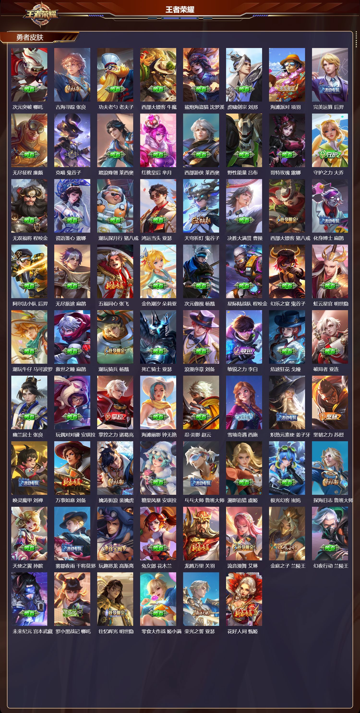 安卓QQ/无双王者/336皮肤/127英雄/2典藏/0珍品无双/2无双/4珍品传说/21传说/84史