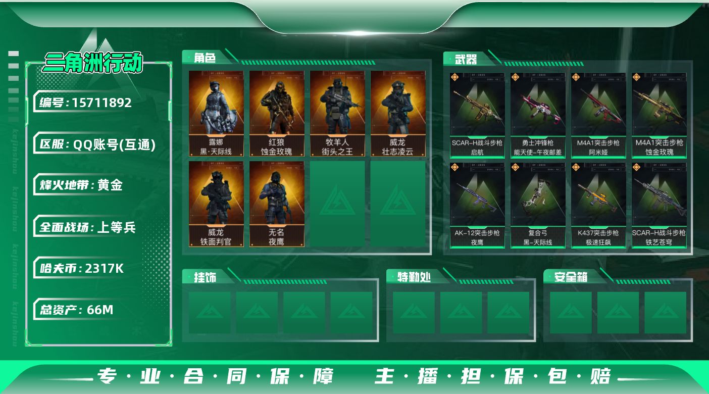 总资产(M):66M/哈夫币(K):2317K/哈夫币(K):2317K/传说枪皮数:14/全面战场