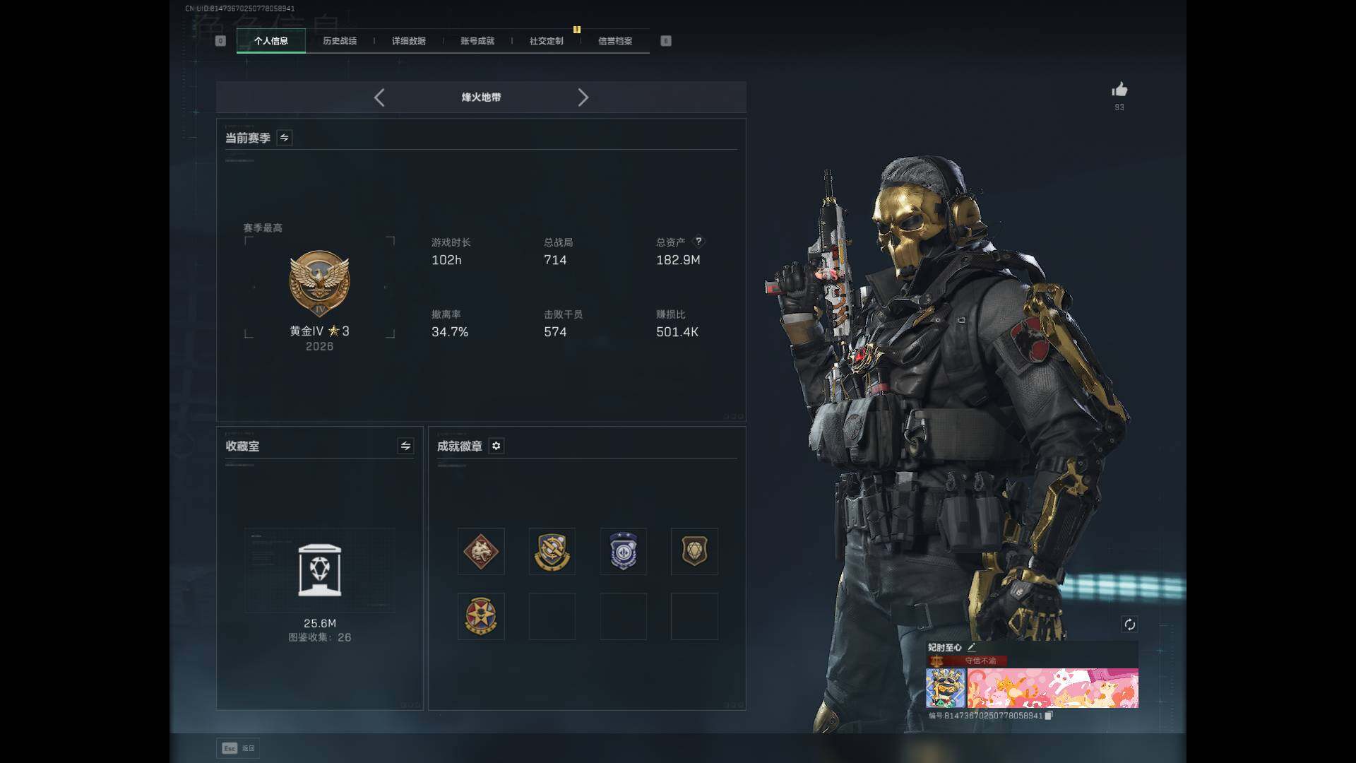 总资产(M):182M/哈夫币(K):20338K/哈夫币(K):20338K/传说枪皮数:22/全