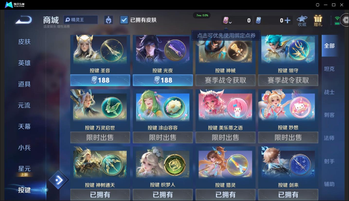 可二次-V7-254皮肤-2典藏-1星元-6传说幻光神枪,启示之音,一念神魔-80史诗有至尊宝-4个性按键