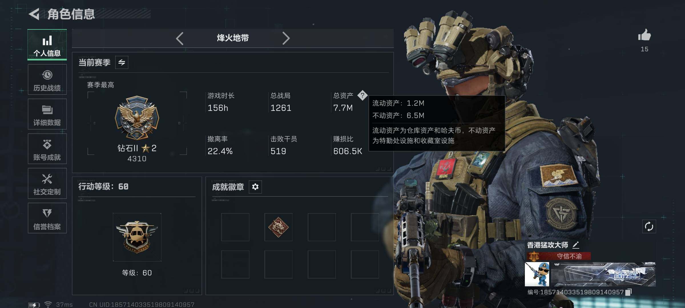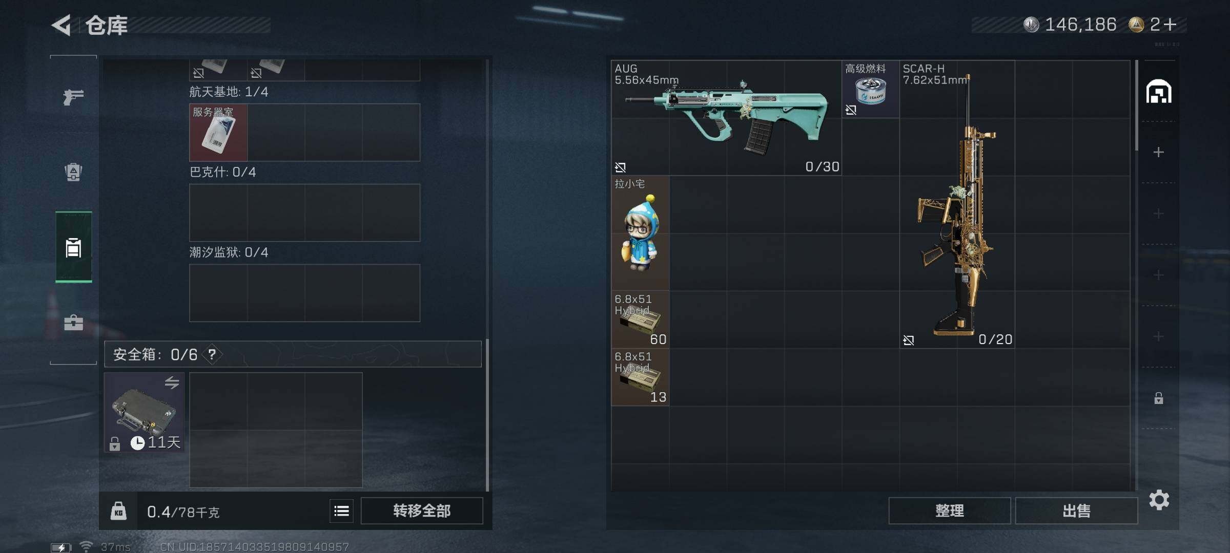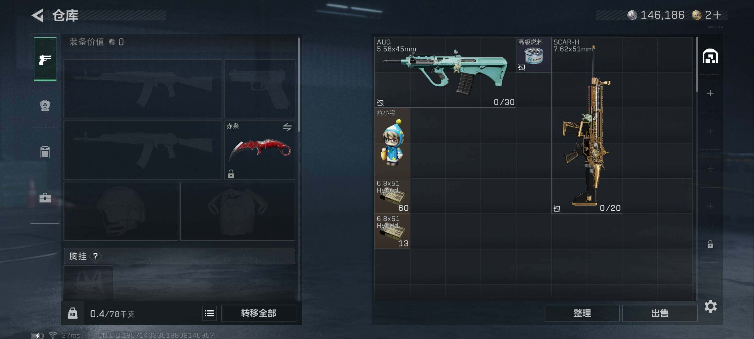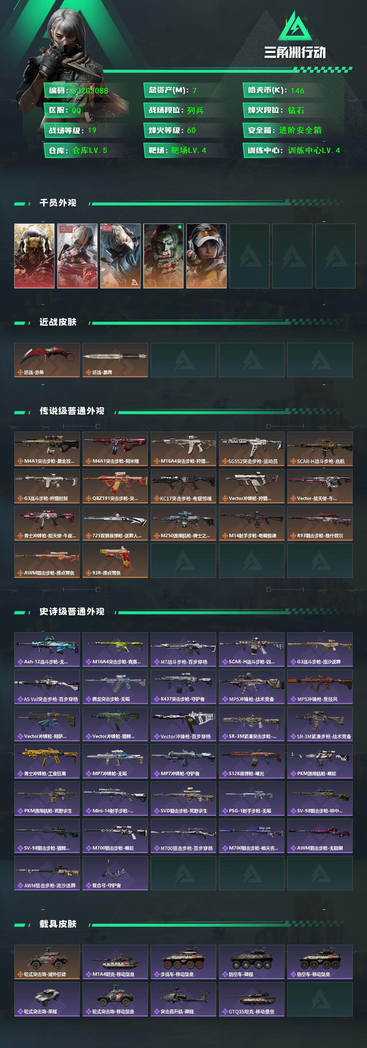 总资产(M):7M/哈夫币(K):146K/哈夫币(K):146K/传说枪皮数:17/全面战场等级: