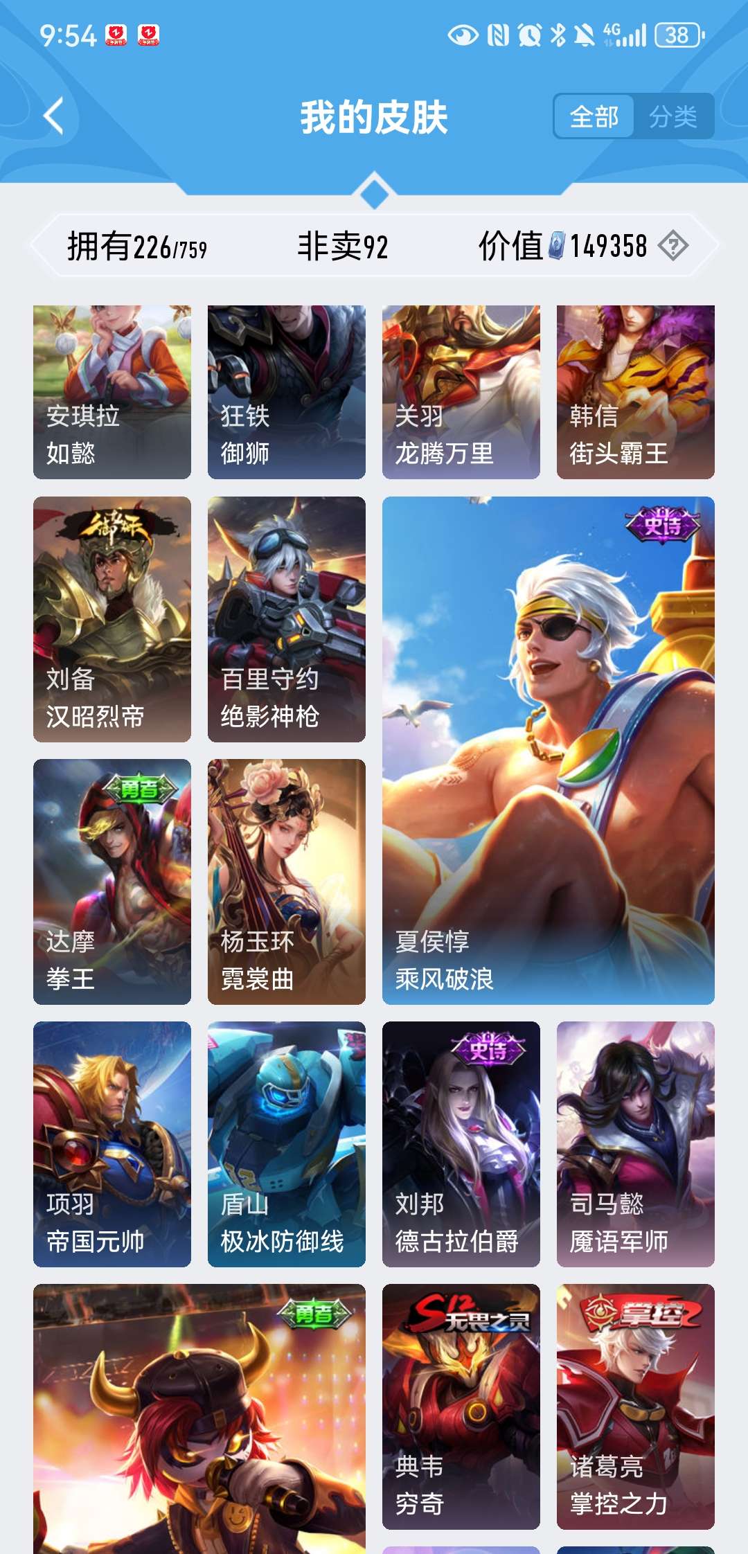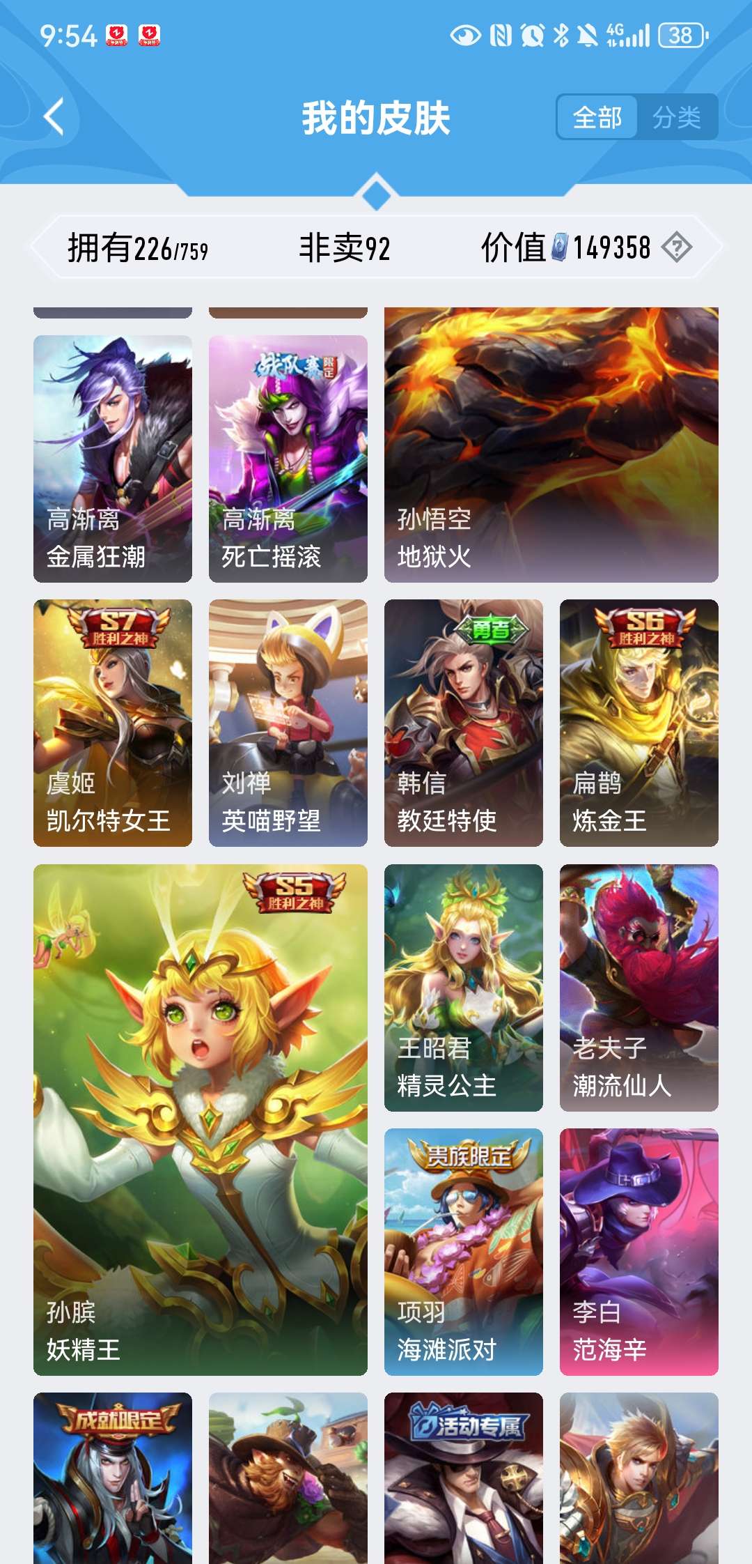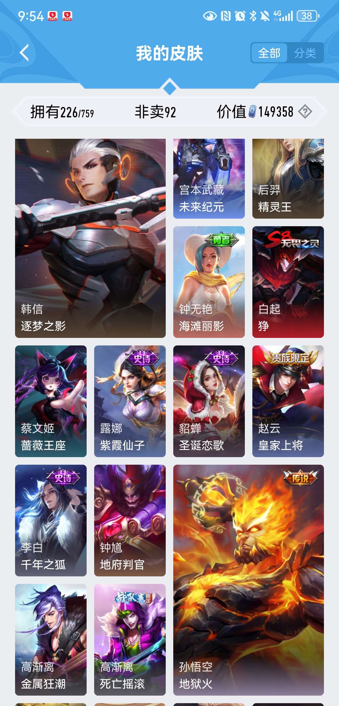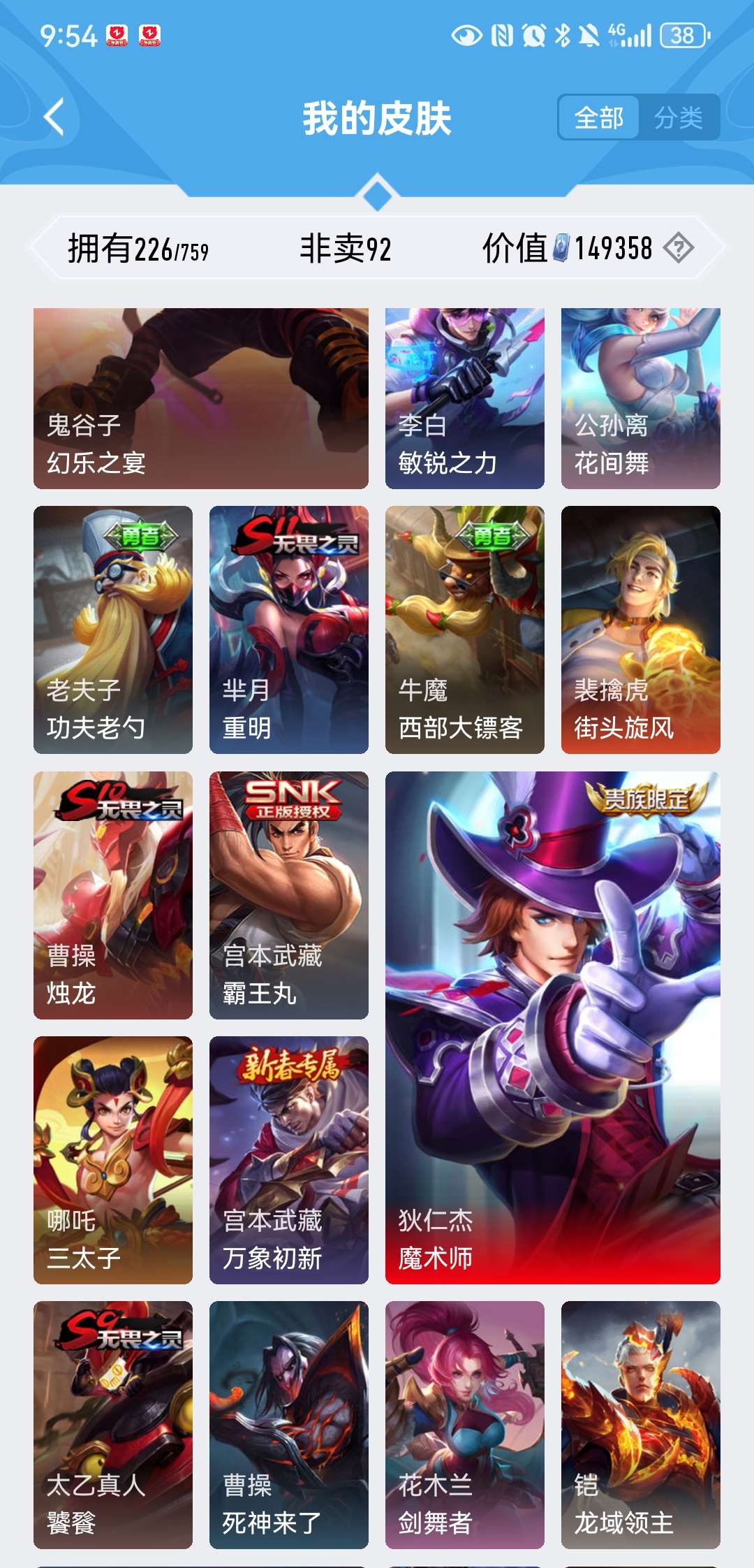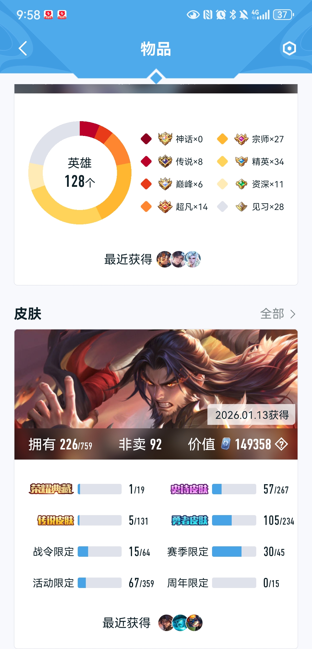 V8 皮肤226 英雄129 至尊星耀 荣耀典藏2 星传说1 传说5 其他皮肤226