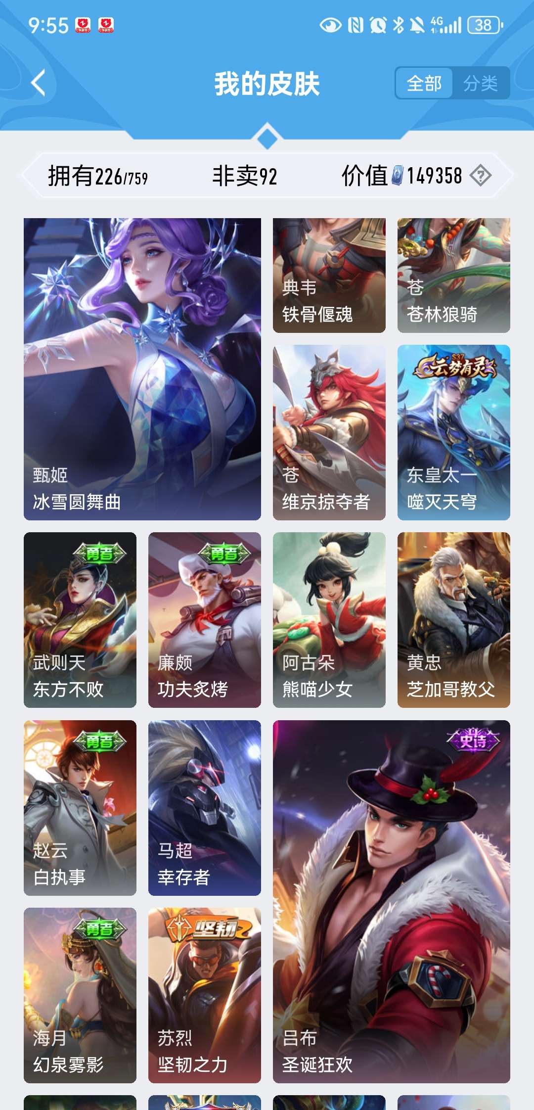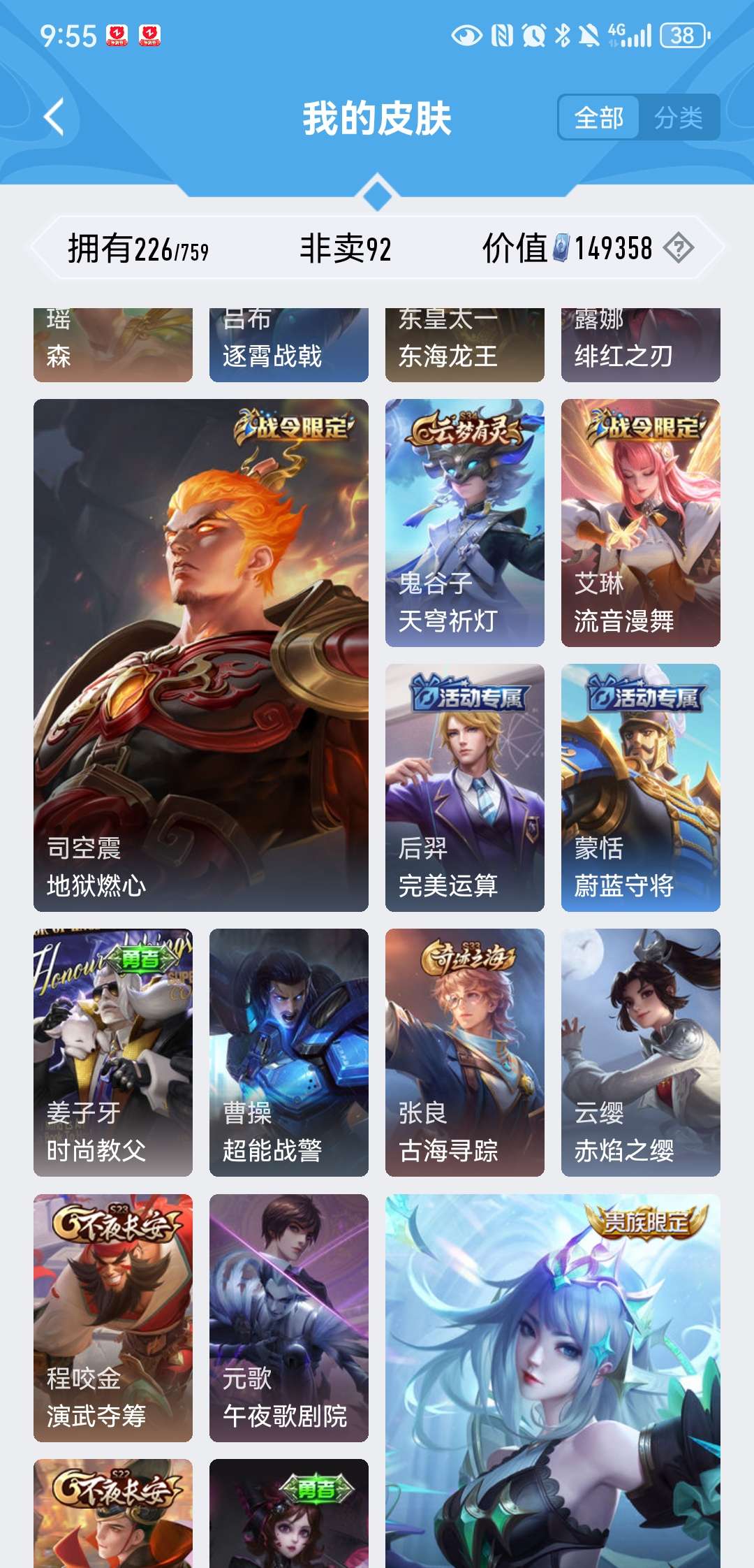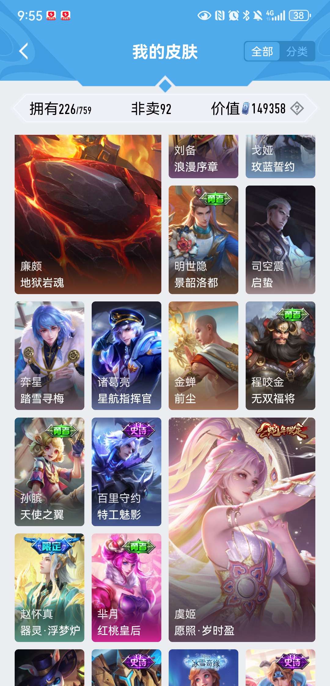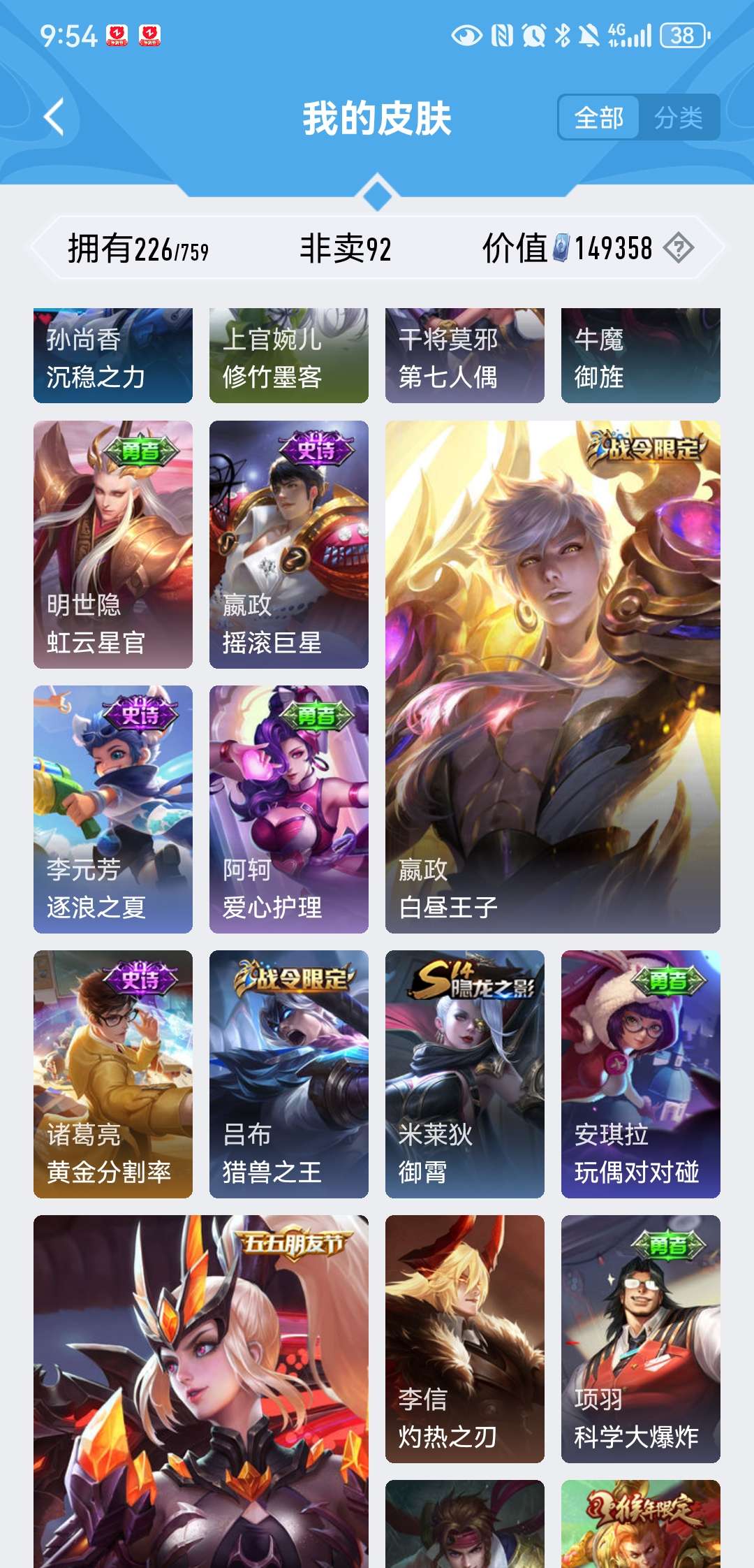 V8 皮肤226 英雄129 至尊星耀 荣耀典藏2 星传说1 传说5 其他皮肤226