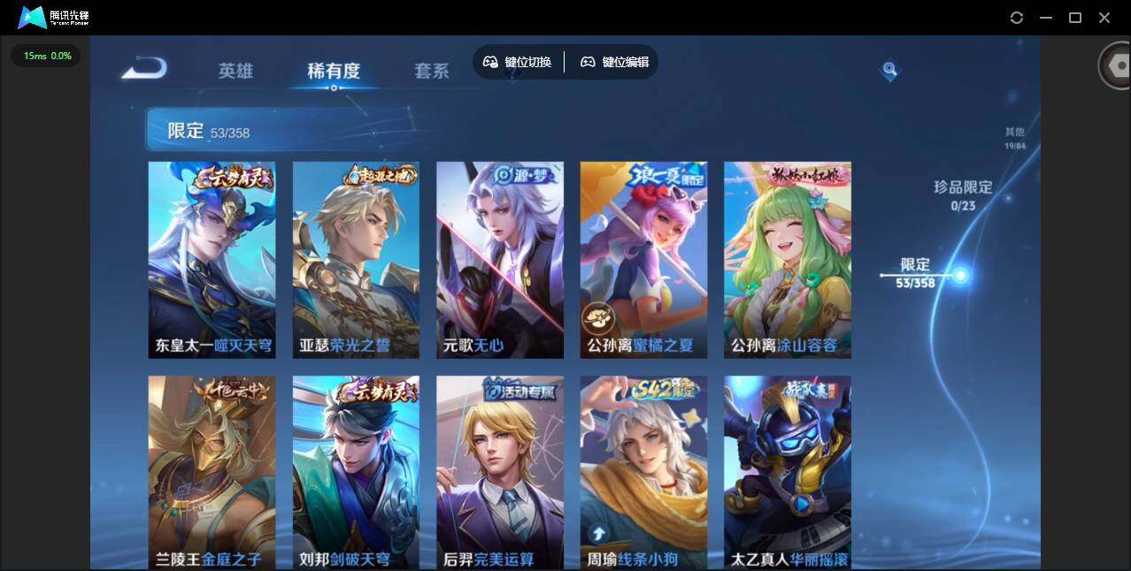 【金标海诺 金标赵怀真】实名: 可修改 贵族等级: V5 英雄数: 128 皮肤数: 155 荣耀水晶: 幻阙歌 星传说: 幽冥之眼,金色仲夏夜 传说皮: 仲夏夜之梦,地狱之眼 限定皮: 游园惊梦,蜜橘之夏,逐梦之音,五谷丰年,鸣野蒿,愿照·九州拓