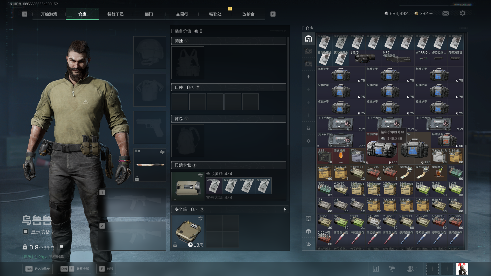 仓库价值103.6M 哈夫币694492 收藏室43.7M 红狼-电锯惊魂