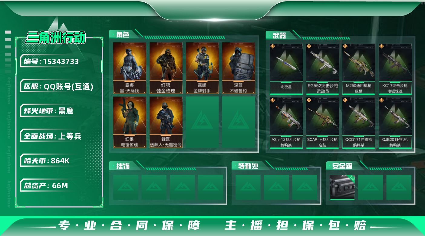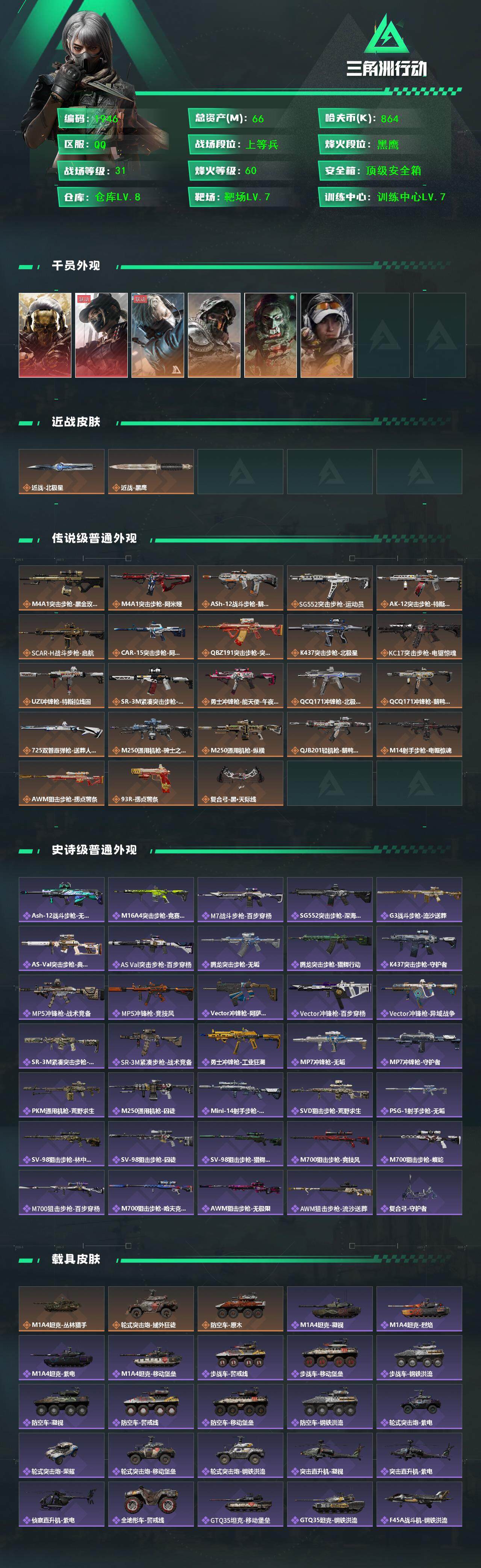 总资产(M):66M/哈夫币(K):864K/哈夫币(K):864K/传说枪皮数:23/全面战场等级