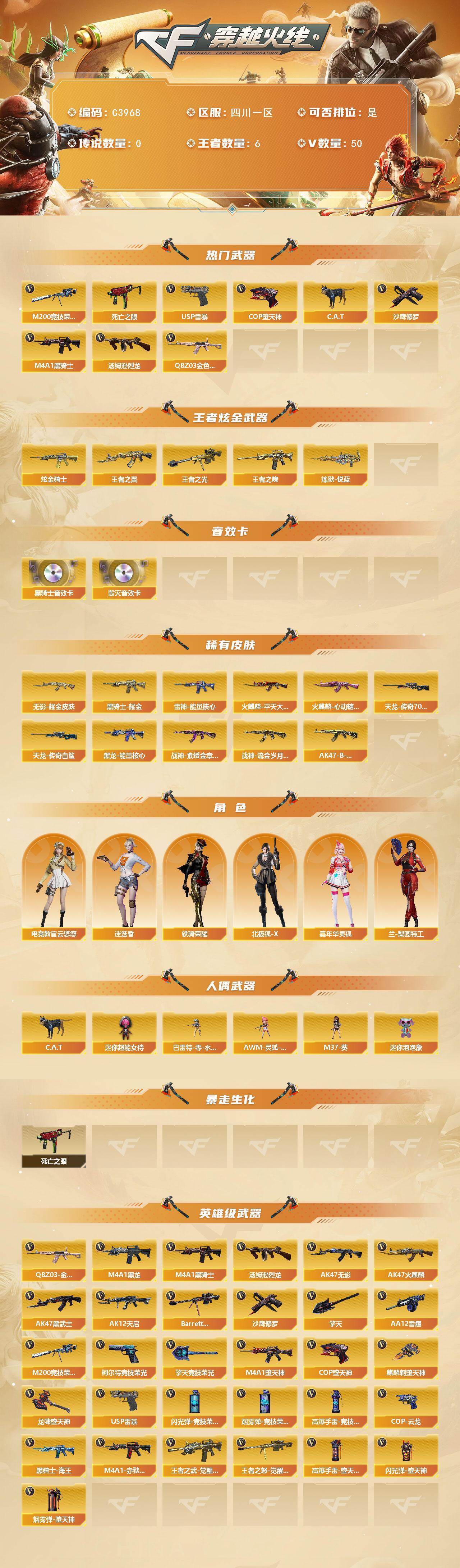 【C3968】四川一区-50V-6王者-1炫金