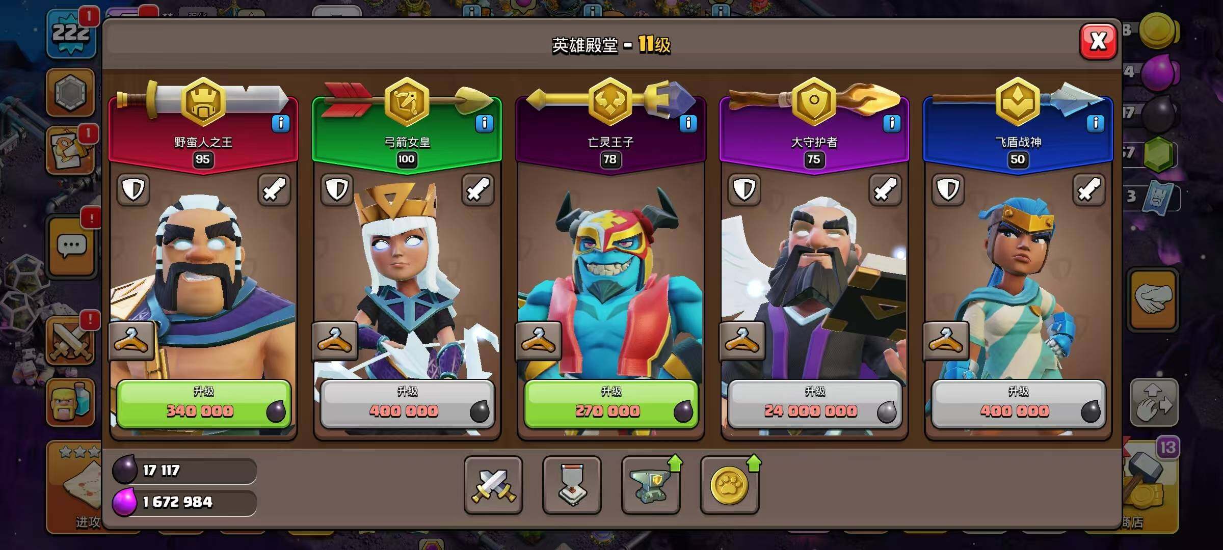 等级222/6农/英雄等级95-100-75-50