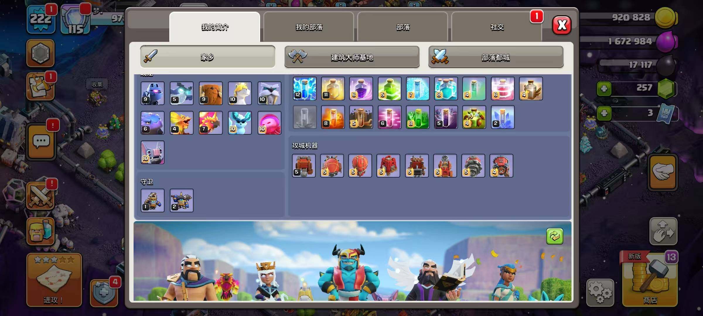 【COCX733】等级222/6农/英雄等级95-100-75-50/海上基地/冰天雪地/部落工坊/幽静丛林/像素世界/狂野丛林/皇家竞技场/原始秘地/魔法世界/哥布林洞窟/太空幻境