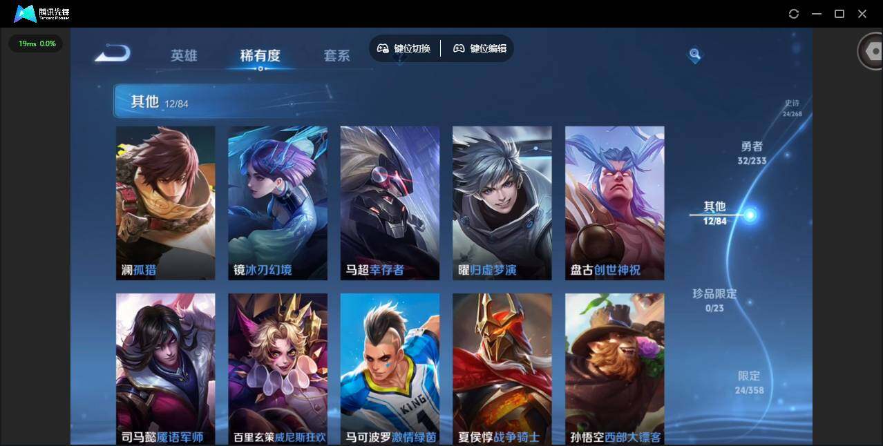 实名: 可修改 贵族等级: V5 英雄数: 102 皮肤数: 70 传说皮: 一念神魔,澜逐花归海 限定皮: 孙行者,逐霄战戟