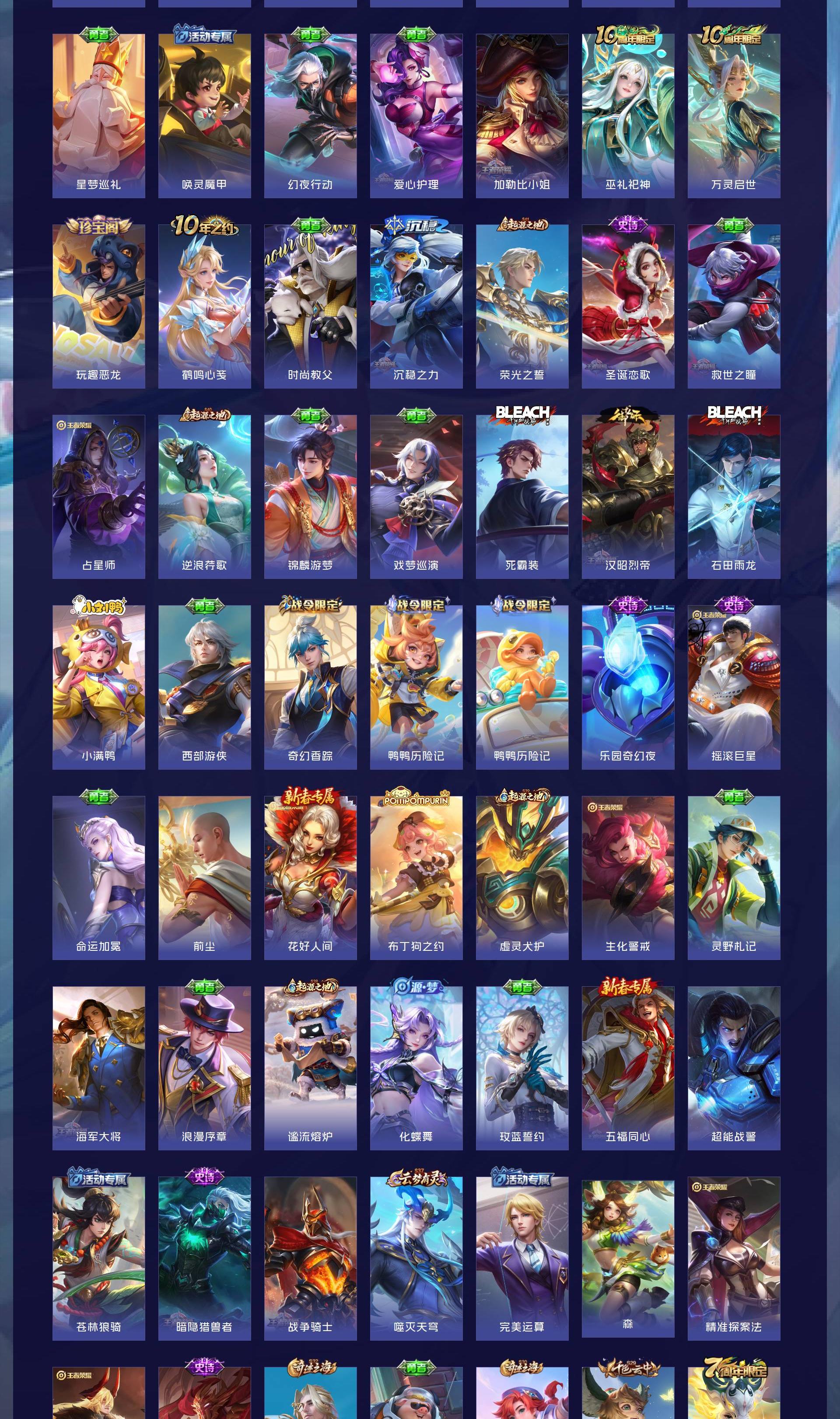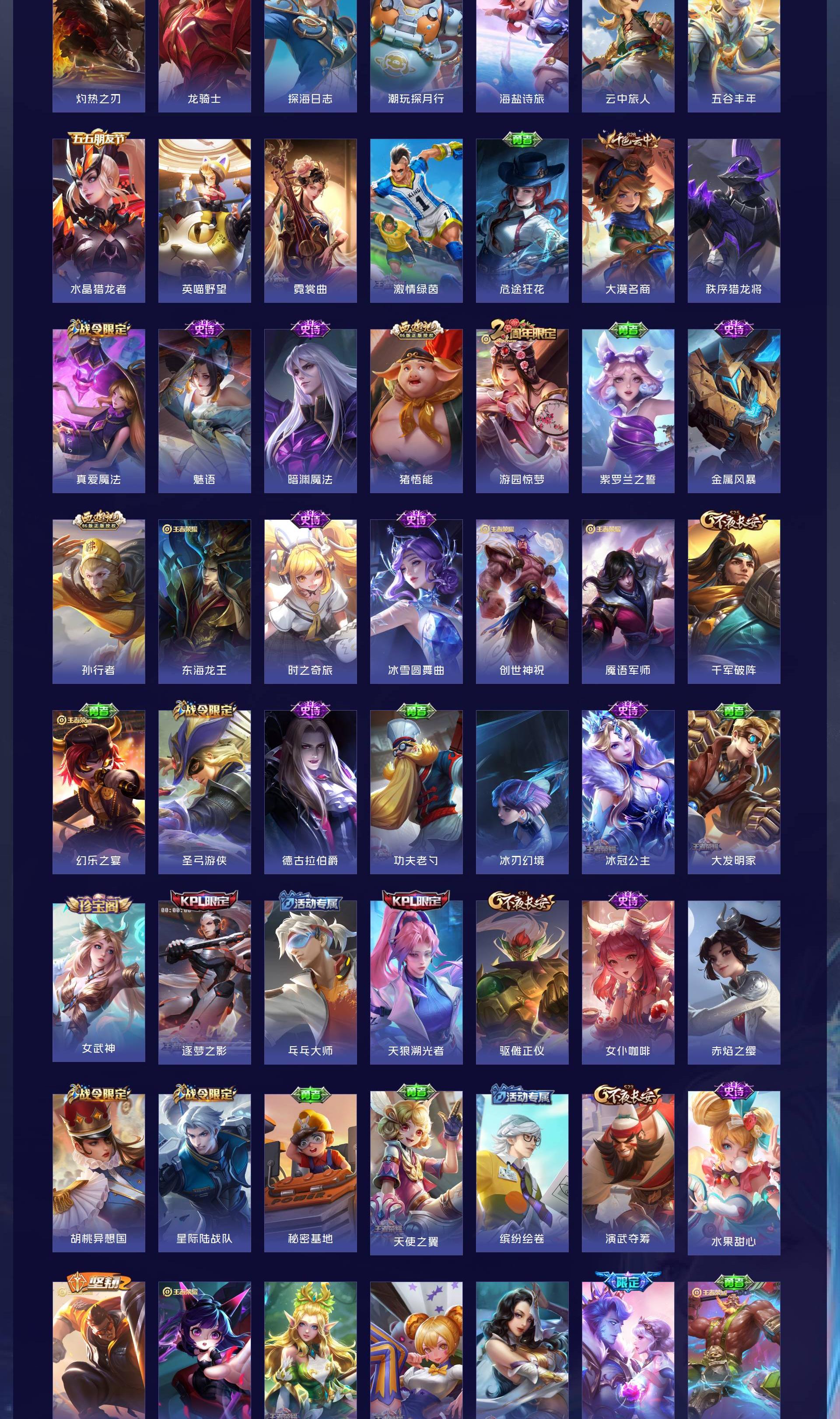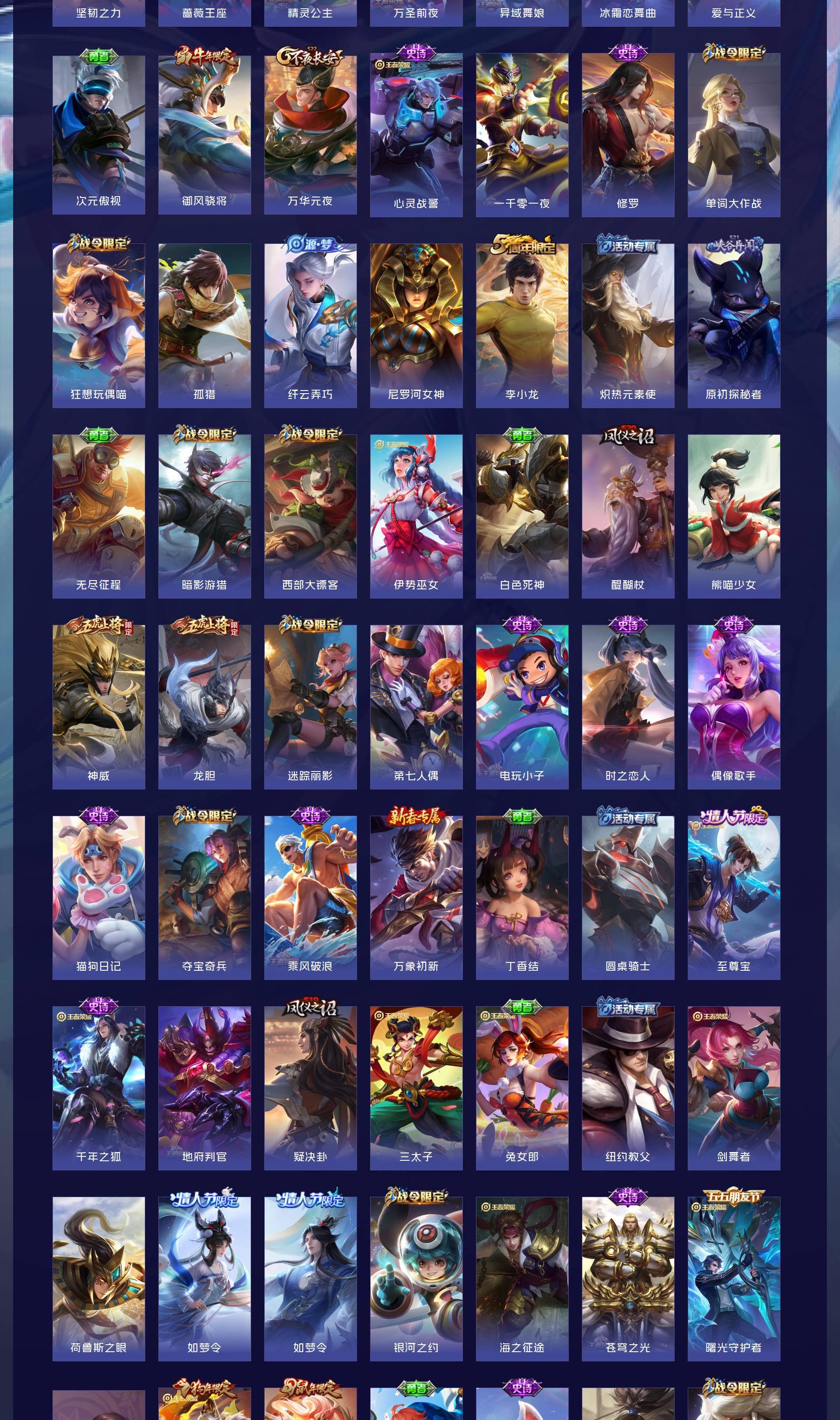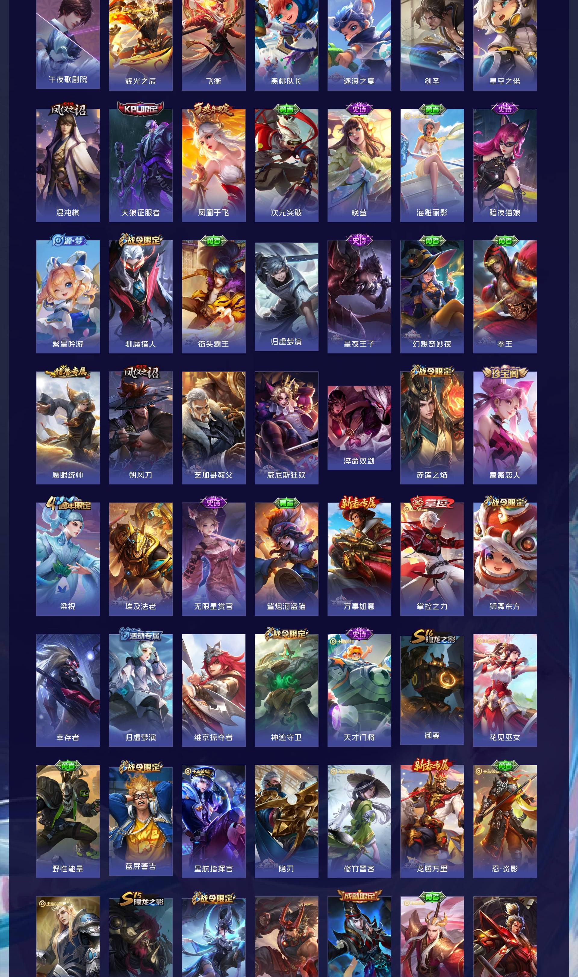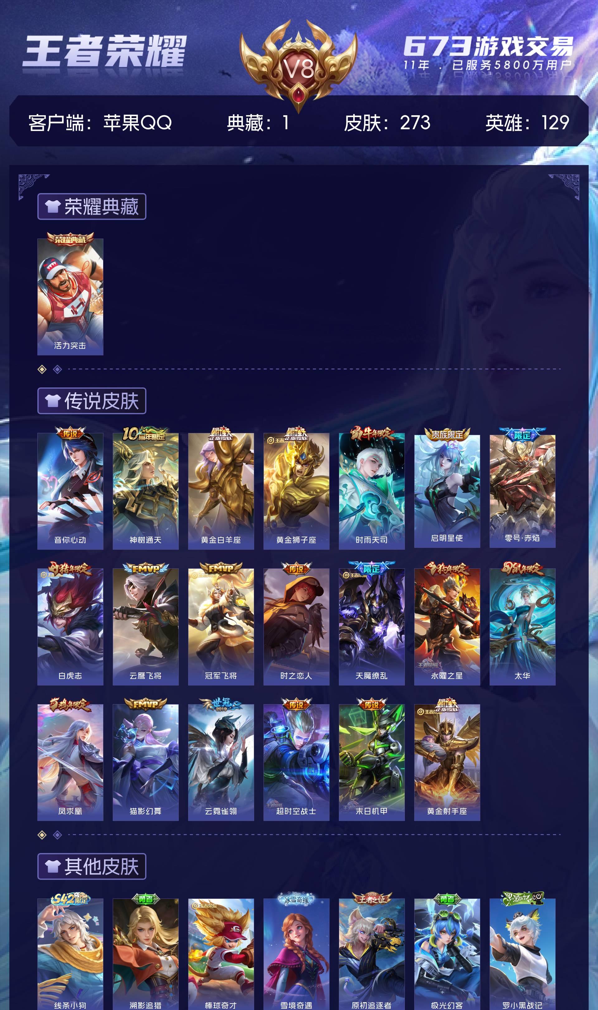 V8 皮肤273 英雄129 永恒钻石 荣耀典藏1 星传说2 传说20 其他皮肤258