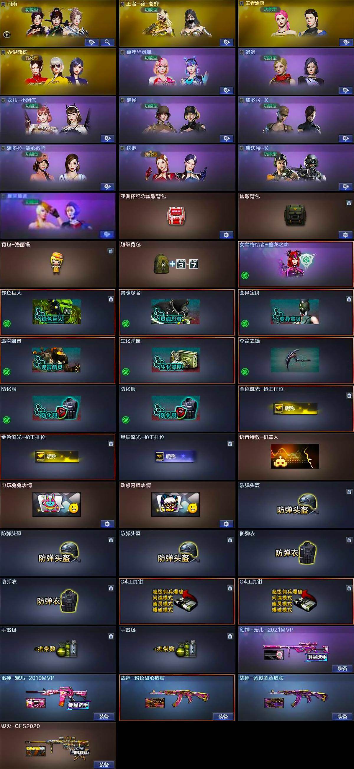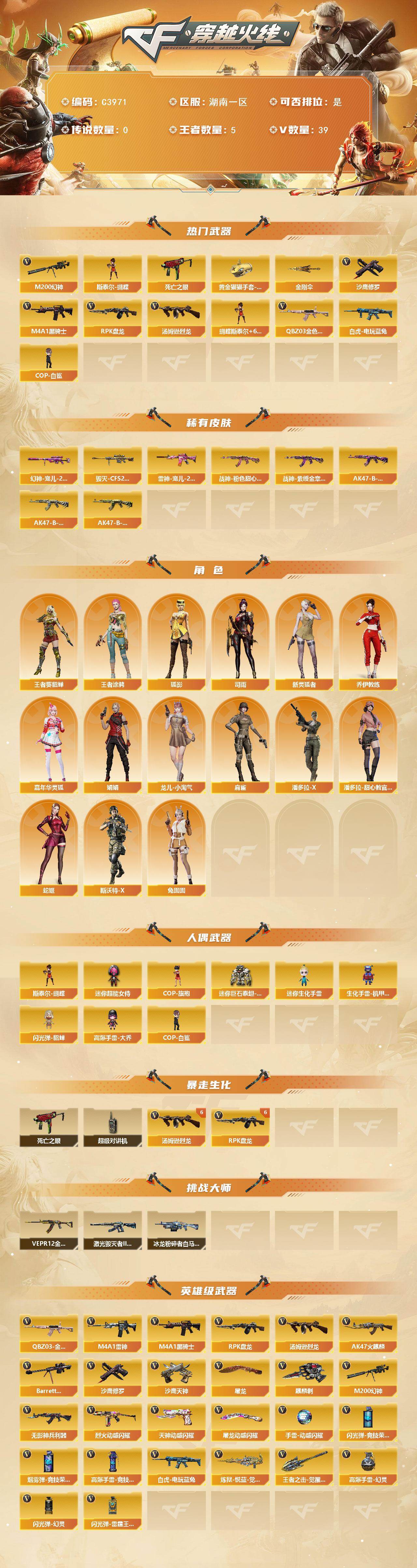 【皮肤】:幻神-宠儿-2021MVP,雷神-宠儿-2019MVP,毁灭-CFS2020,战神-粉色甜心皮肤,战神-紫绶金章皮肤,AK47-B-常胜将军-曹操,AK47-B-常胜将军-刘备*2,AK47-B-常胜将军-孙权