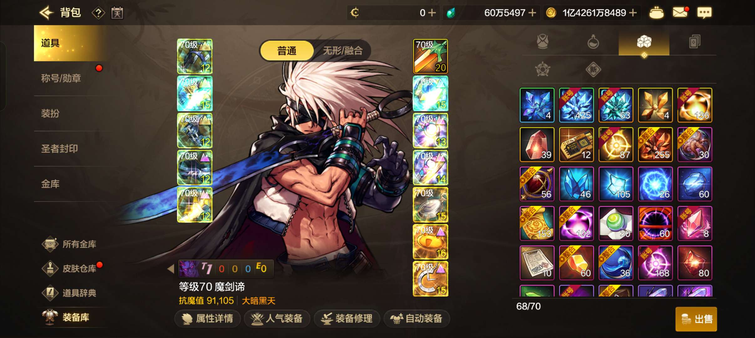 70级阿修罗抗魔91000,泰拉60W,金币1.4亿,天空套,3个满级角色,有游戏环境异常,解不了