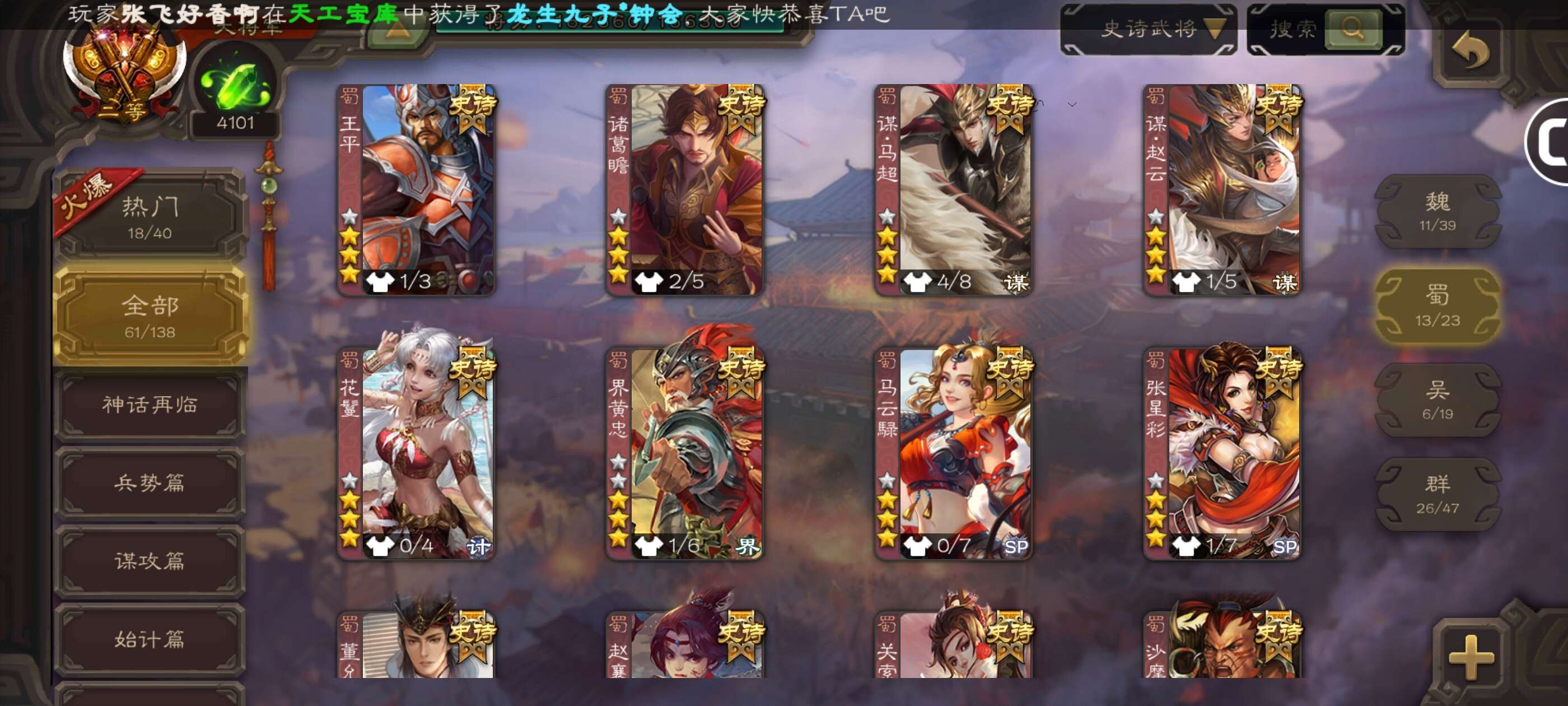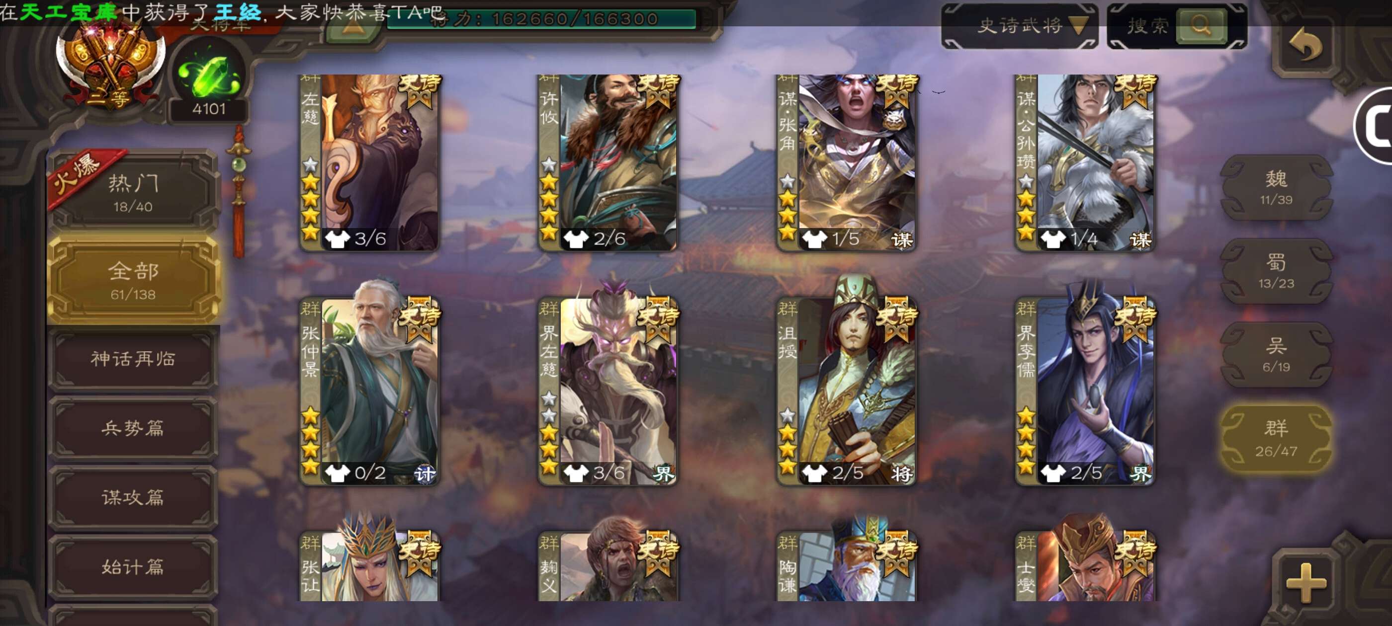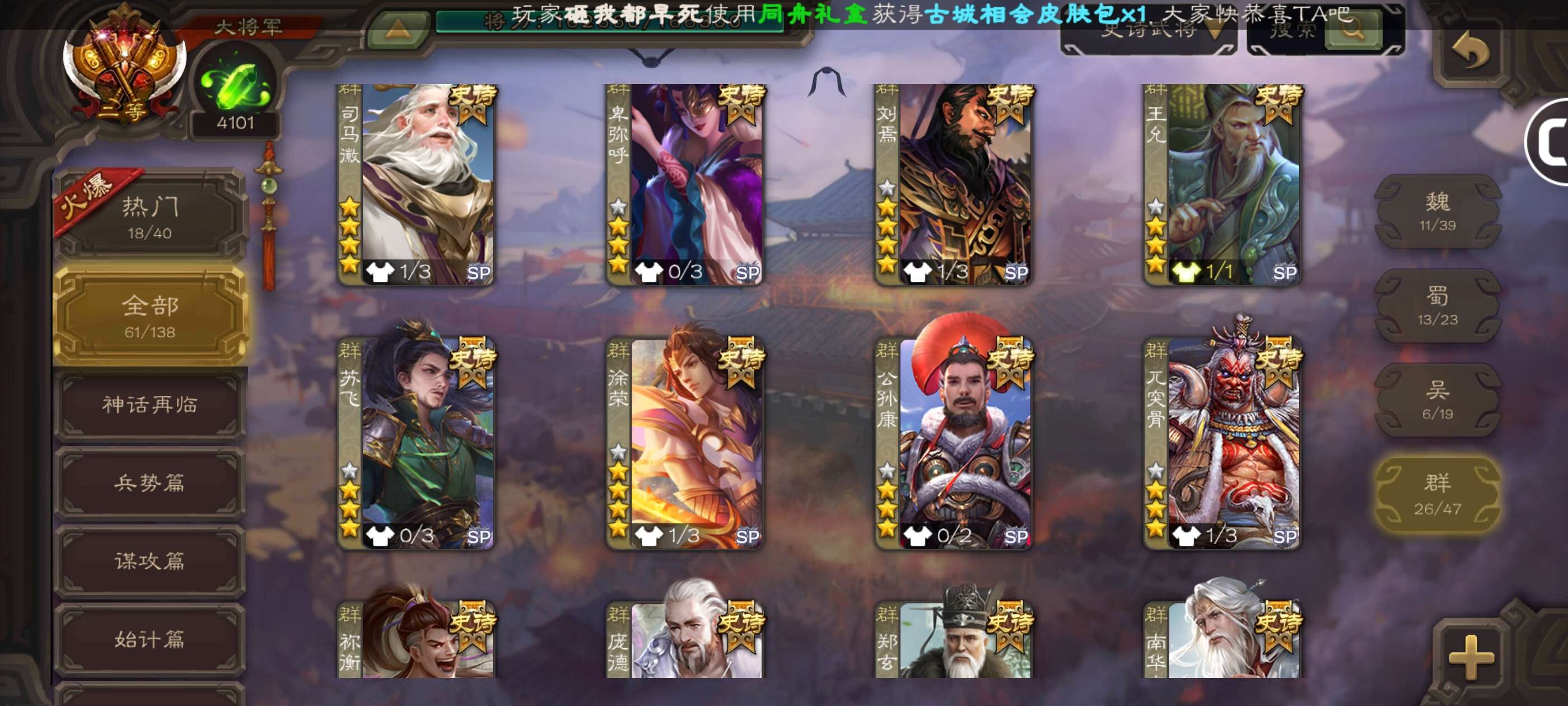史诗武将数量: