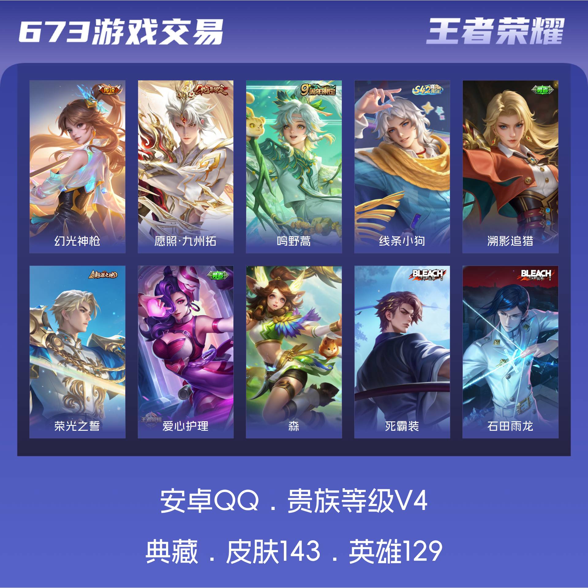 V4 皮肤143 英雄129 永恒钻石 传说3 其他皮肤146