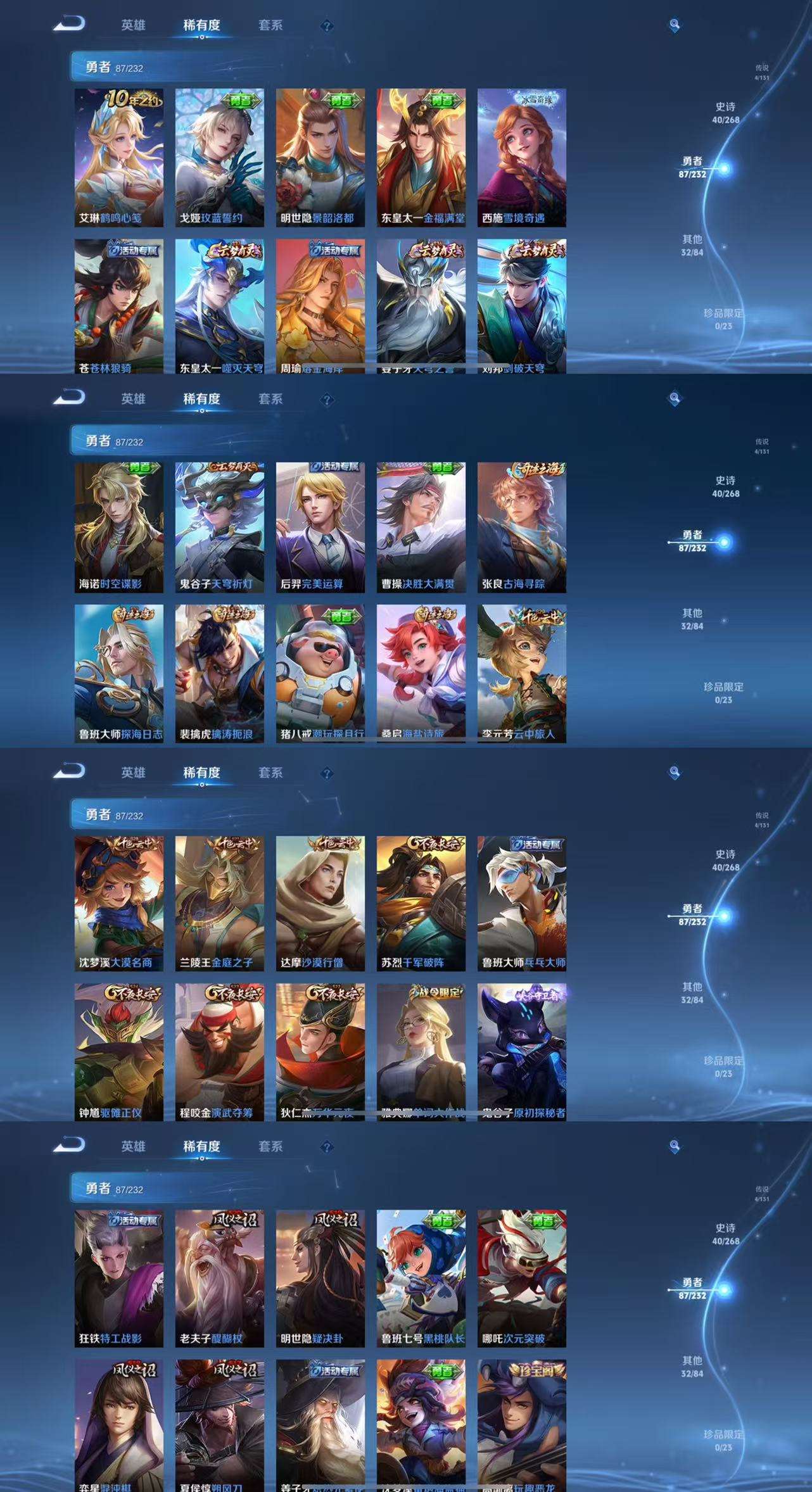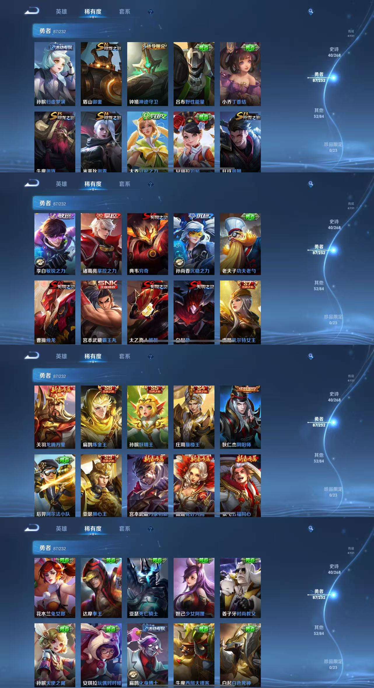 163皮肤4传说40史诗59限定 愿照九州拓 鸣野蒿 乞巧织情 云鹰飞将
