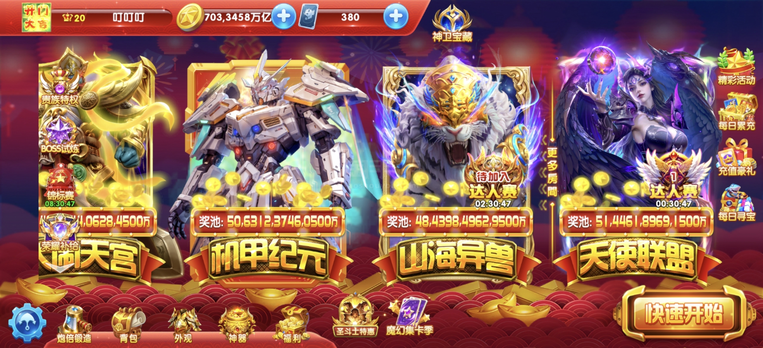 小米渠道V20加成1965十四套老三国999新三国876西游机甲9山海655神卫76天使套766带组合技,冥斗士差一个,4级大天使,圣器全满,救济26000万亿,带700兆起号资金