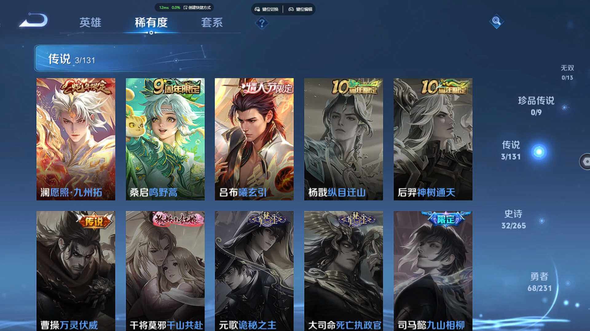 安卓Q-V5-至尊星耀III段位-114英雄-113皮肤-3传说-32史诗【