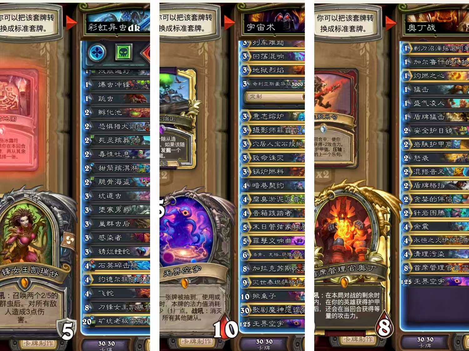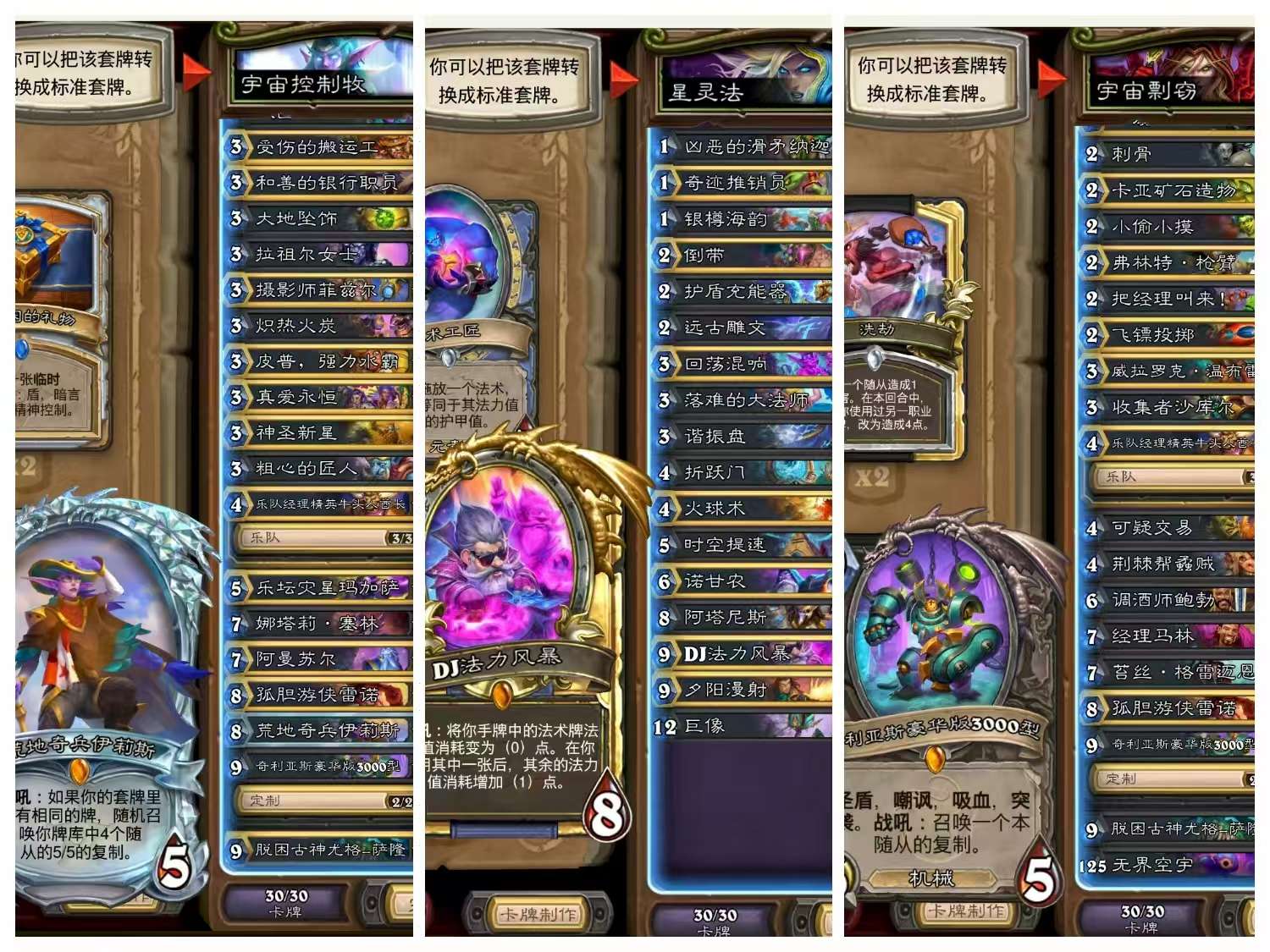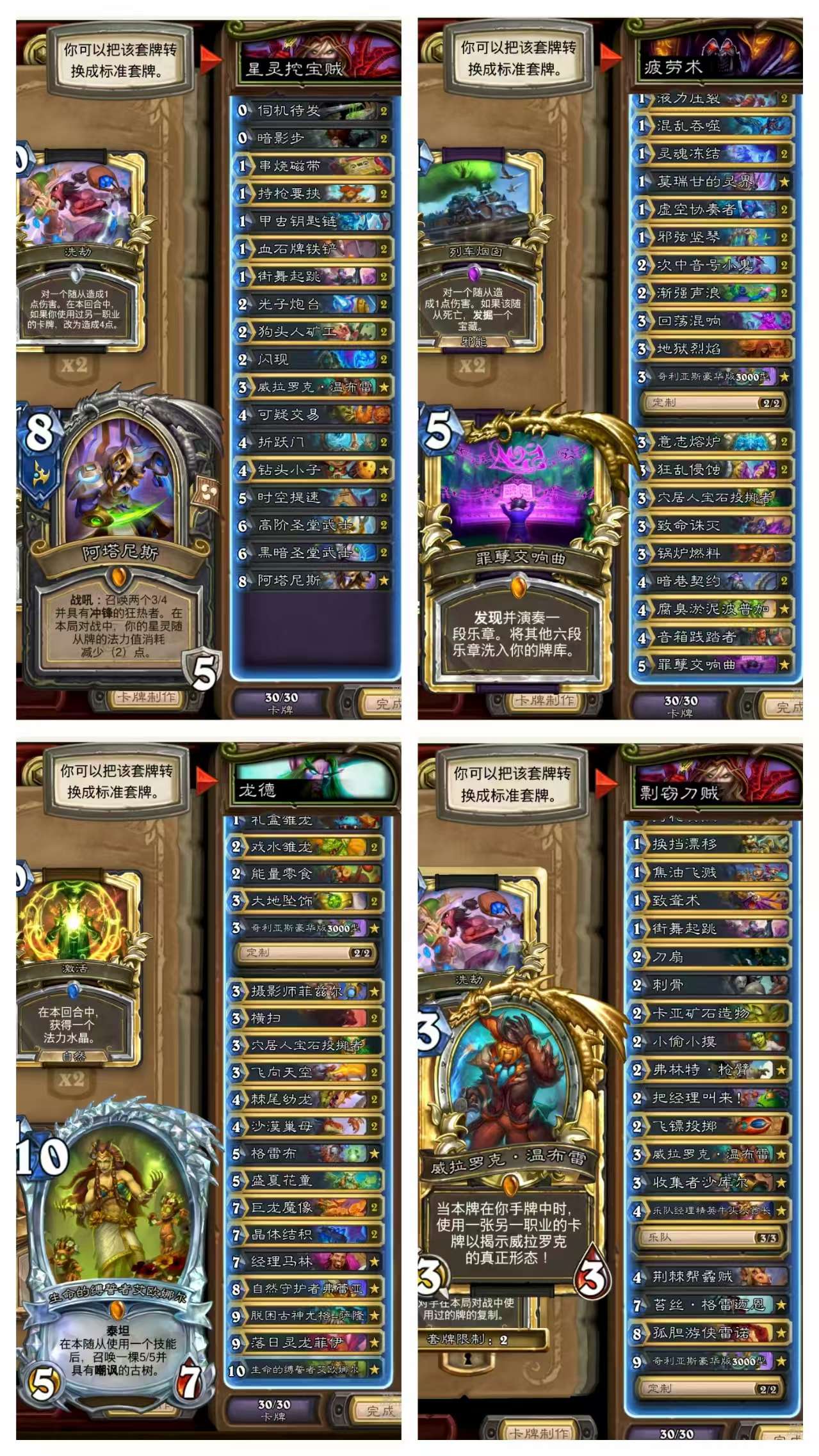 炉石传说国服25套卡组3000金币 可换绑,全活绑, 卡组包含拉法姆术,奇闻任务术,星灵法,国服前百彩虹dk,元素法,宇宙战,疲劳术,元素萨,机械贼,宇宙控制牧,污手骑,宇宙德,宇宙龙德,大哥德,控制牧等