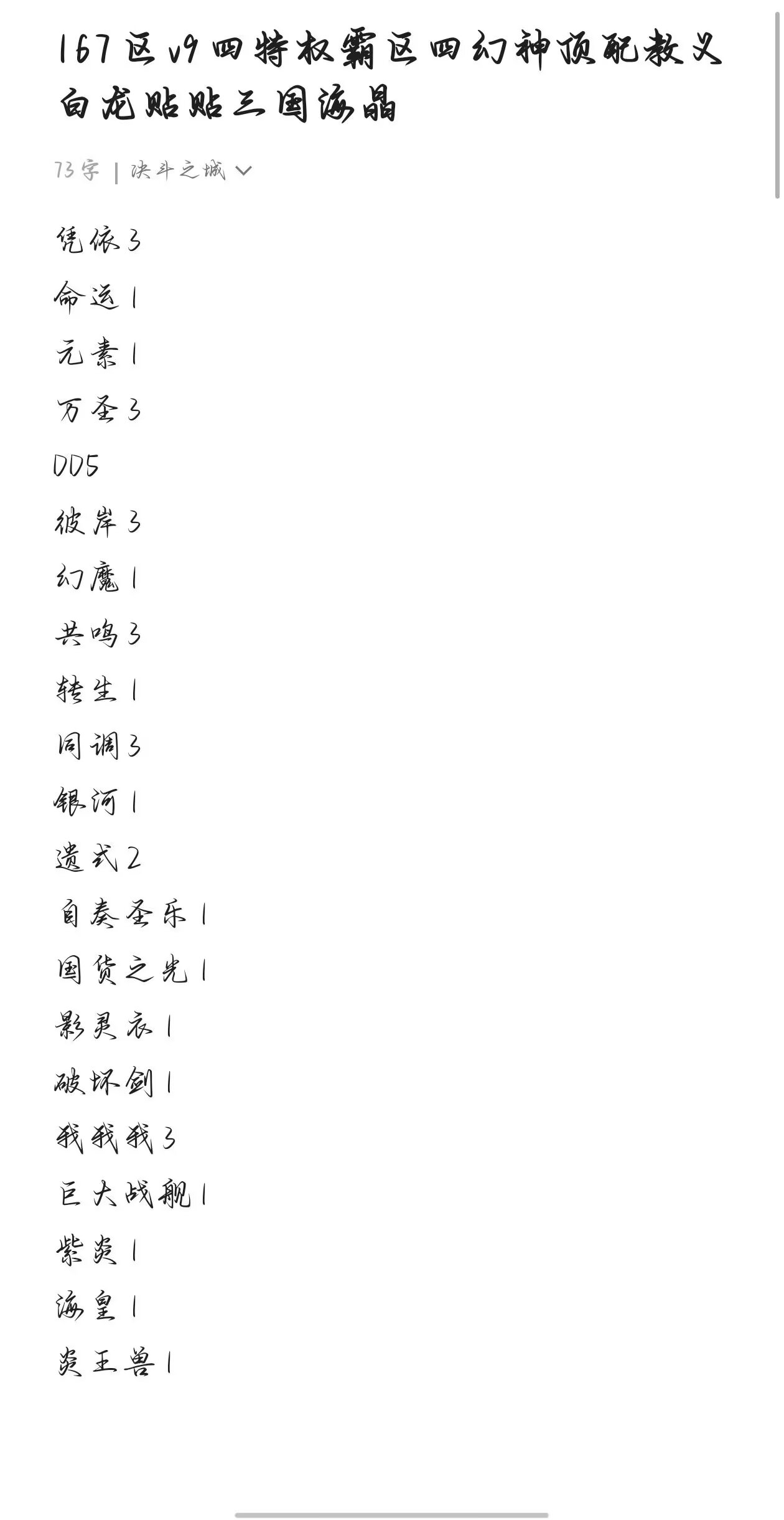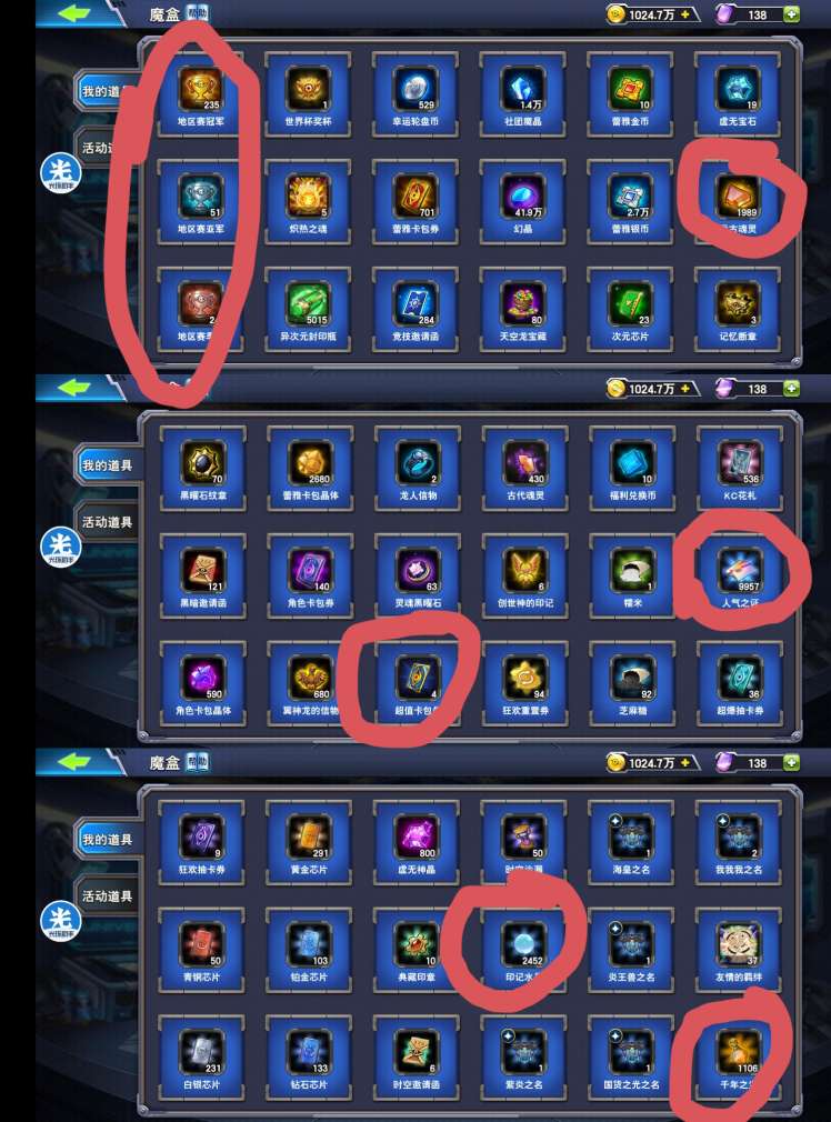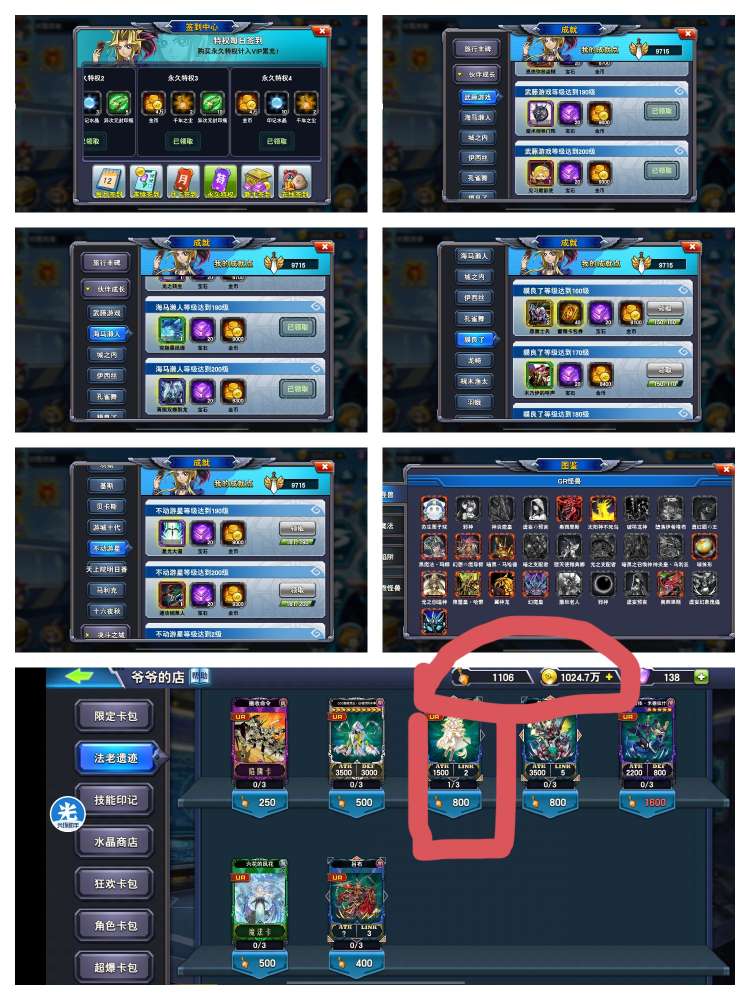 金杯234个,成就9715,白龙黑魔200级,金蛋四幻神炎岛3一时,珊瑚索菲亚阿尔法魔笛曹操黑神圣蛇