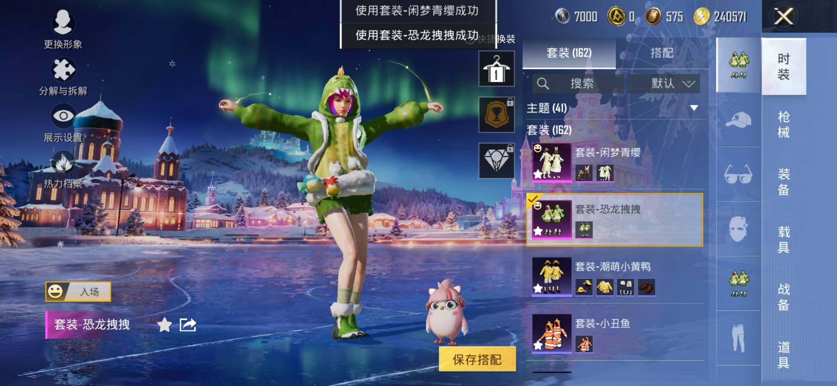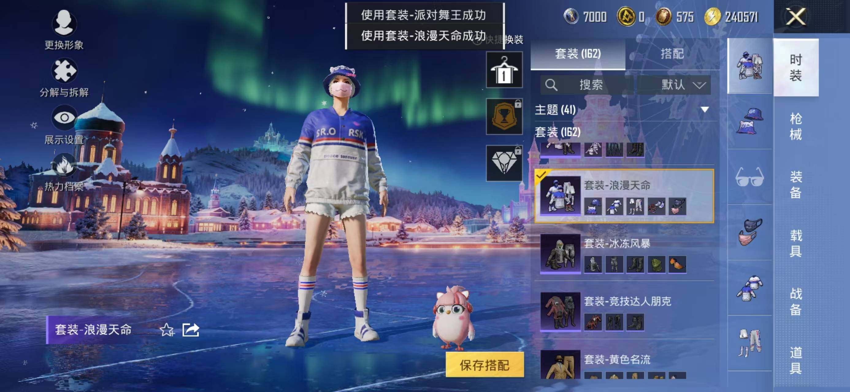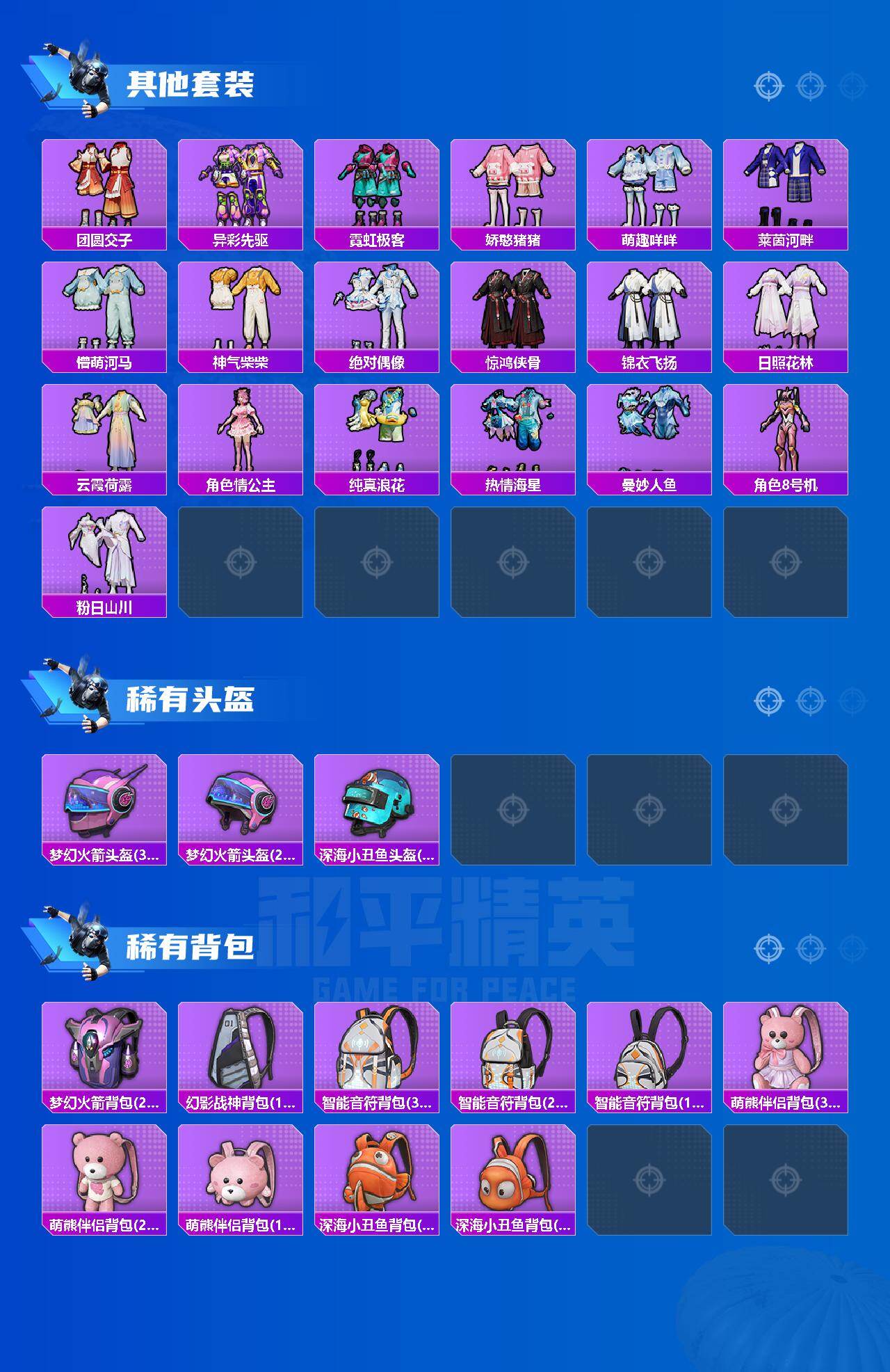 【热门品类】:粉装-梦幻火箭,套装-浪漫天命,套装-派对舞王,套装-深海小丑鱼,套装-小丑鱼,套装-奇异狩猎者,